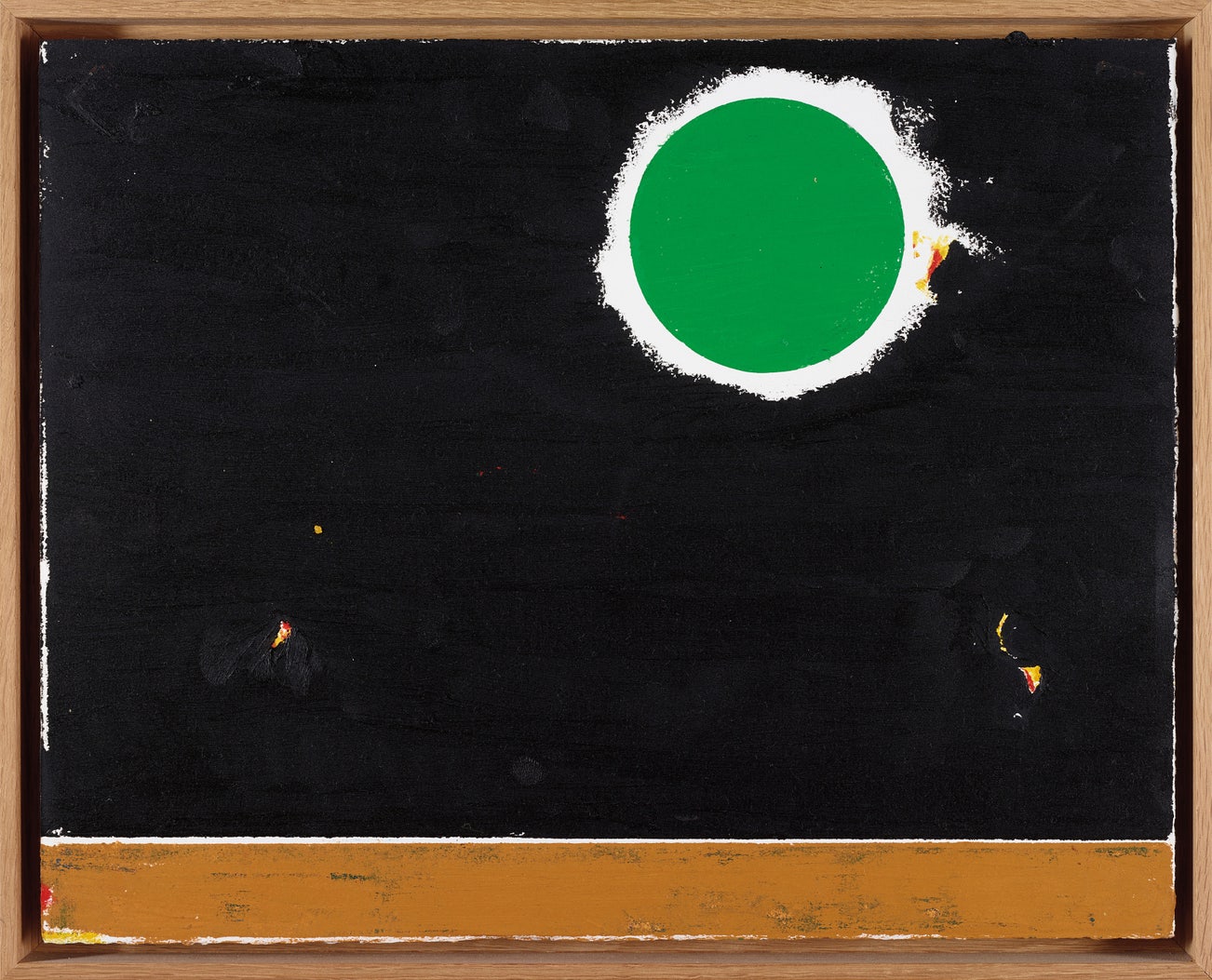 pencil and oil stick on paper, in artist's frame