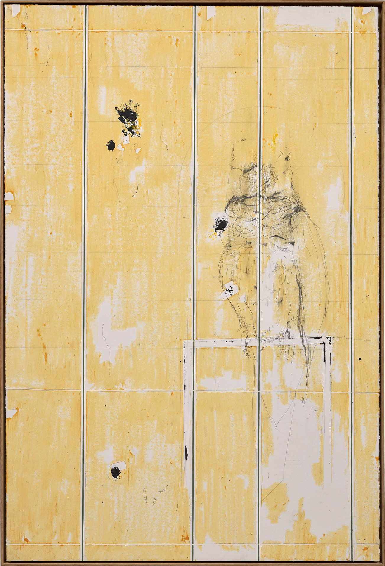 oilstick and graphite on paper, in artist's frame