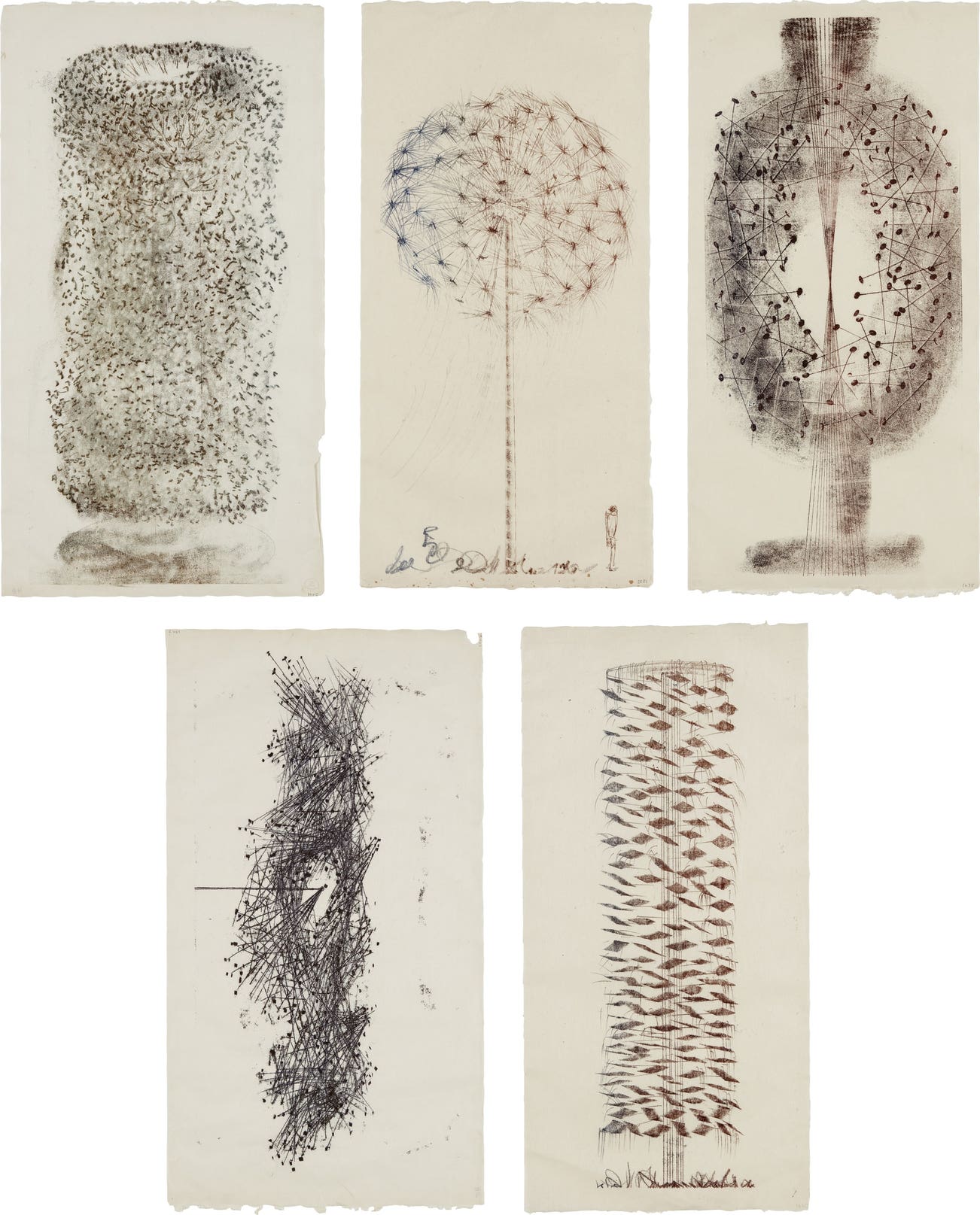 All signed with initials on the reverse and annotated 1005, 1007, 1635, 1645, 2081 in blue ball-point pen, all unframed.