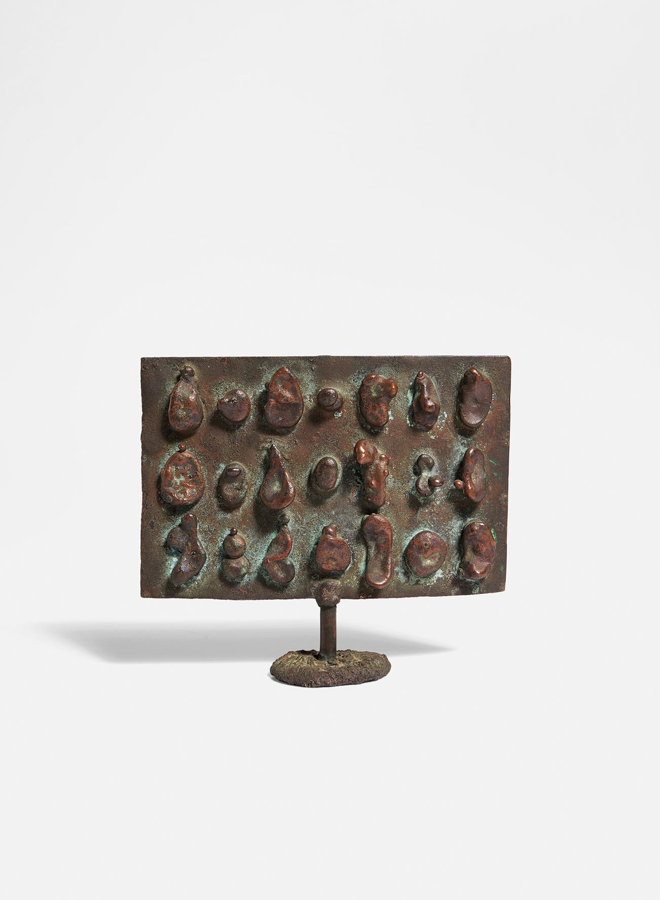 Patinated bronze, copper.