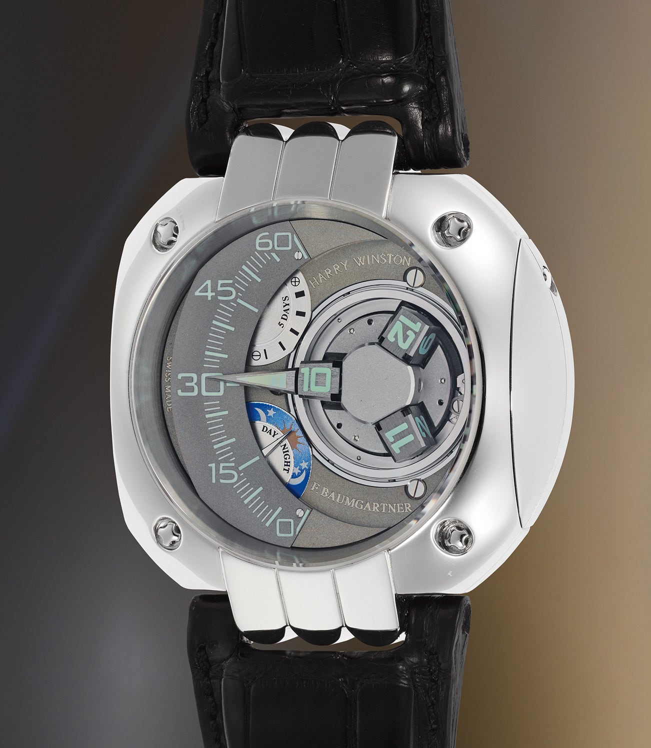 Harry Winston’s Opus collection was a revolutionary collaborative effort between the famed brand and selected renowned independent watchmakers to produce a series of limited edition, unique, and unusual complicated timepieces. The effort began in 1998 when Harry Winston hired Max Büsser as director of rare timepieces, and finally launched in 2001 with the Opus One, a collaboration with François-Paul Journe. Büsser sought to make cutting edge watches with some of the brightest talents in the horological world that pushed the limits of both the design and the mechanics of watches. The Opus V was an impressive collaborative effort developed with Felix Baumgartner, co-founder of the independent brand, Urwerk. Its unusual yet mesmerizing three-dimensional time display features three rotating and revolving cubes that indicate the hours, along with a retrograde minute complication.