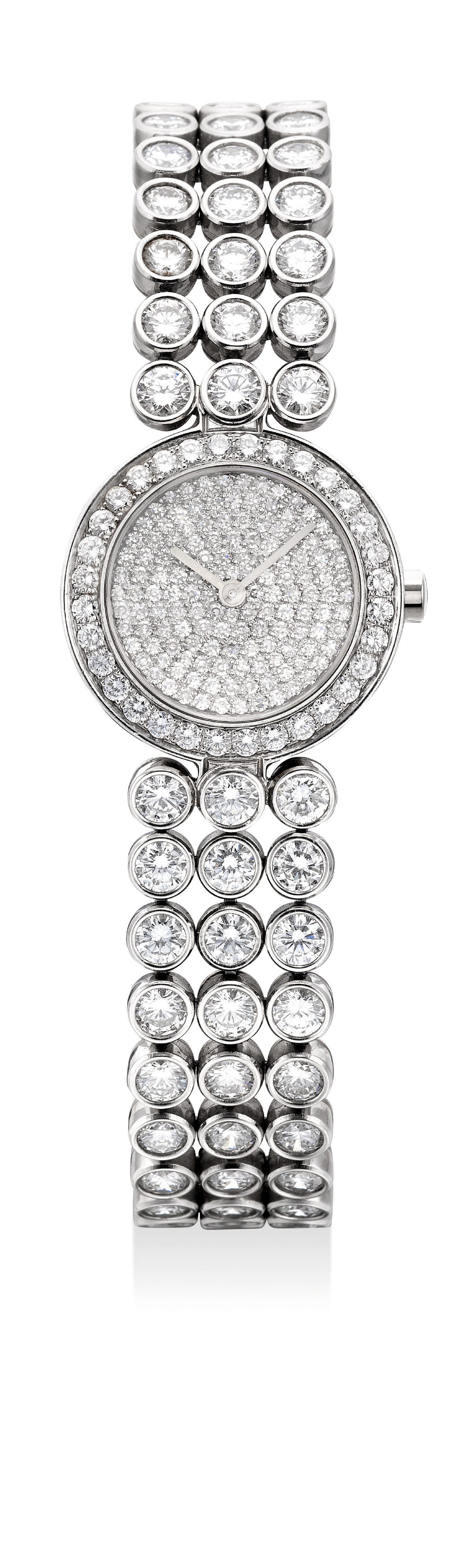 A ladies fine and elegant platinum and diamond-set wristwatch with diamond-set
