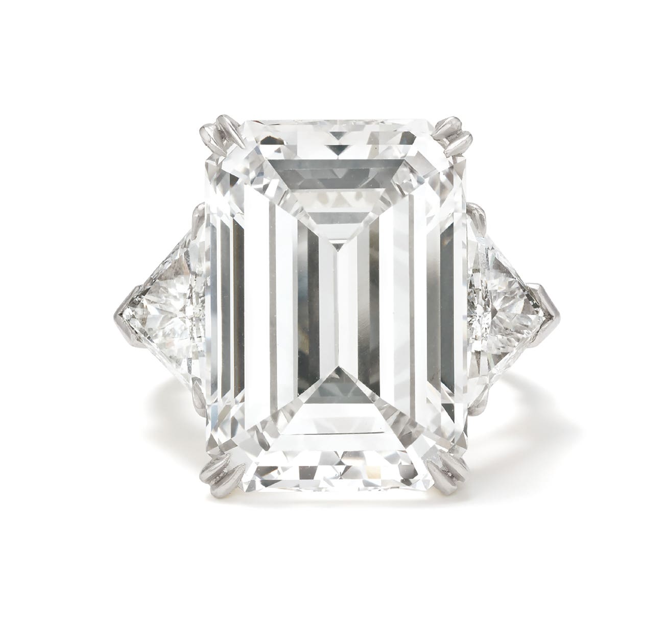 The following two Harry Winston rings illustrate examples of this practice, philosophy and superior knowledge of gemstones. The Burmese ruby ring, lot 227, was manufactured in 1968, and was designed with the intention to capitalize on the outstanding color and liveliness of this unheated gem. The diamond frame helps to promote the beauty of the center stone by adding contrast and brilliance. The color, saturation and play of light perform against each other, leading your eye to the center, reinforcing the depth of color. Similarly, lot 226, with a central emerald-cut diamond weighing 11.34 carats, has a minimal frame. This ring was designed in 1983, and was created with the intent to focus on the exceptional quality, color and clarity of the central diamond crystal. Harry Winston instinctively understood gemstones, as demonstrated by his first purchase, as well as in these two rings. His true love and passion for these gifts of nature has delighted women and men around the globe for the last 87 years both in his salons, private collections, and museums.