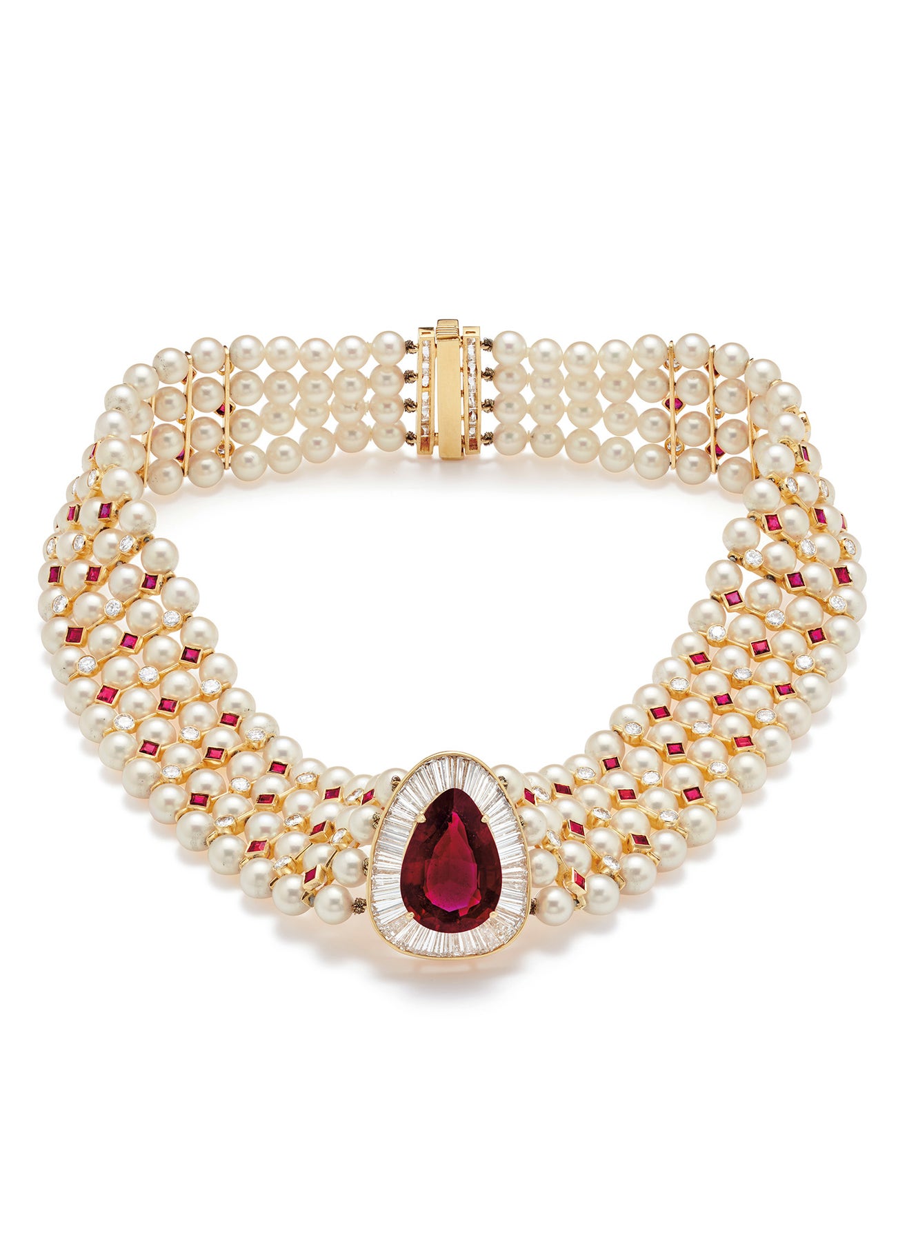 A Tourmaline, Ruby, Diamond and Gold Choker