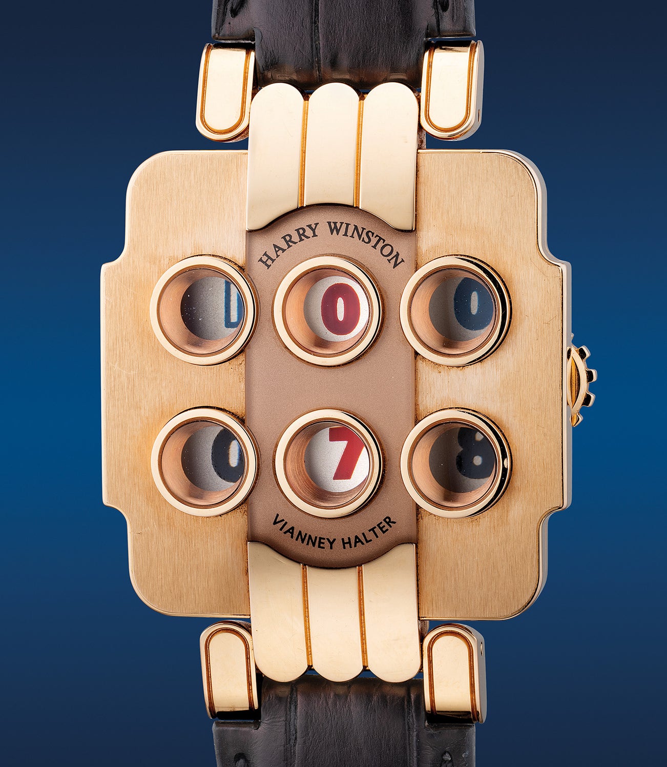 A true horological feat, the Opus 3 is probably one of the most complicated time and date only wristwatches released. A nod to the vision of both parties, the case features both distinct elements of Harry Winston, interpreted on its lugs and its main body screaming Vianney Halter through its steampunk brushed-finished with 6 apertures for its countdown display of time and date. Consisting of 7 overlapping discs for the time and date indications but also a very playful and ingenious countdown of the last 4 seconds of each minute that can be read as follows: