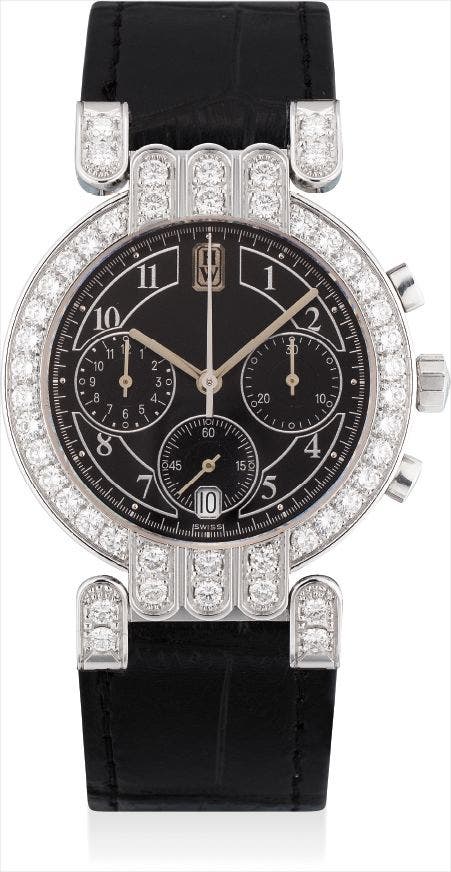 A lady's fine white gold and diamond-set chronograph wristwatch with date