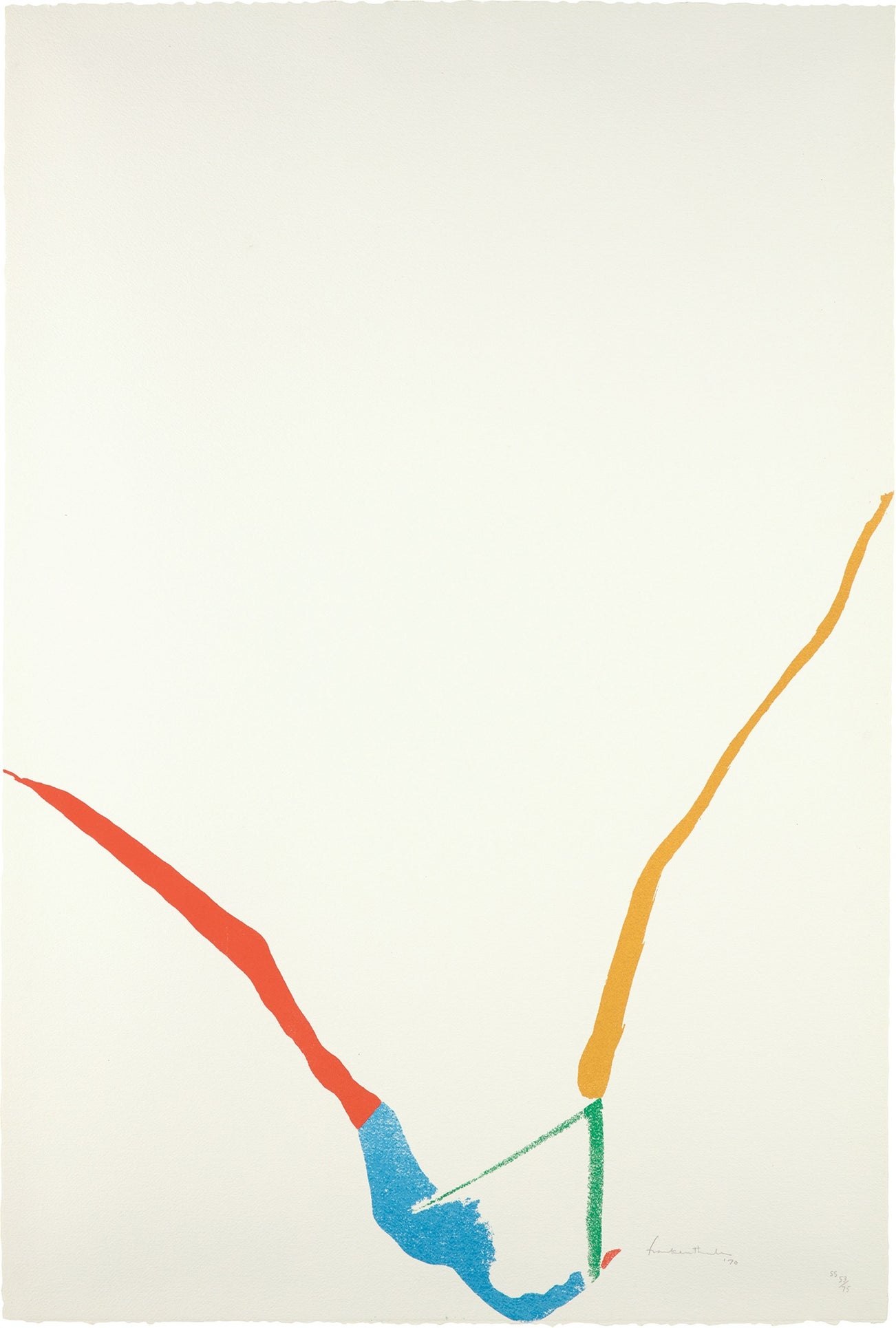 Screenprint in colors, on Arches handmade paper, the full sheet, adhered along the edges.