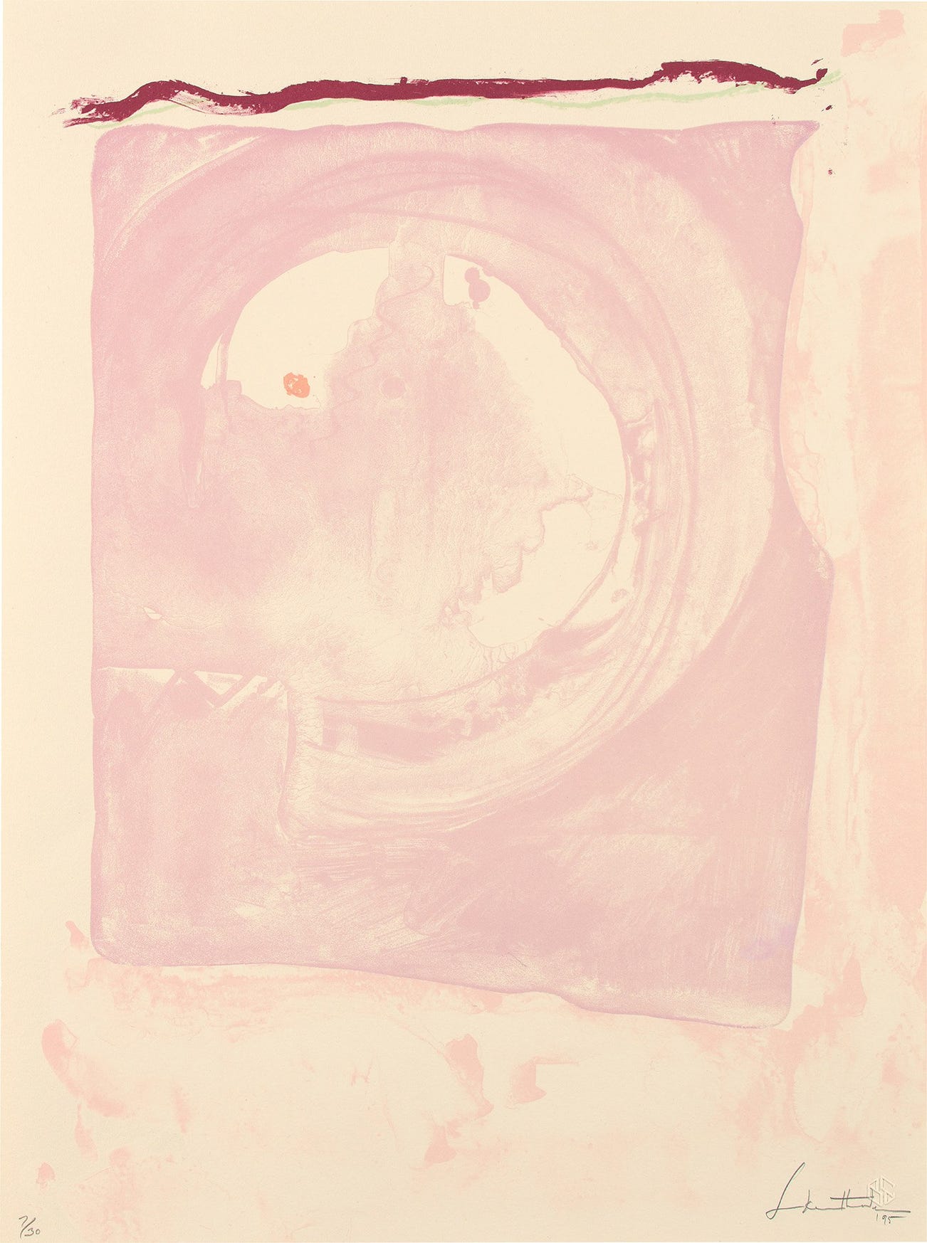 Signed, dated and numbered 7/30 in pencil (there were also 10 artist's proofs), published by Tyler Graphics, Ltd., Mount Kisco, New York, with the pink slightly attenuated, otherwise in generally very good condition, framed.