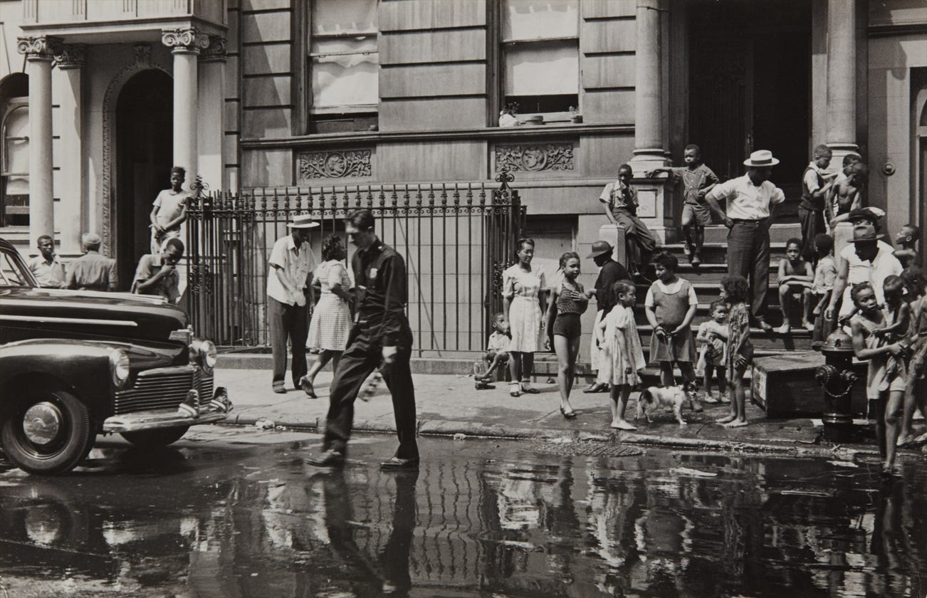 New York (NY policeman, wet street & kids)