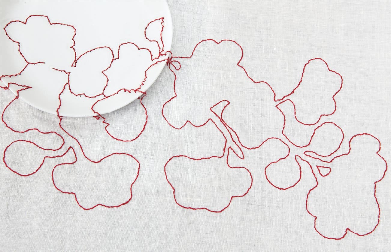 "Red Flower" embroidered tablecloth