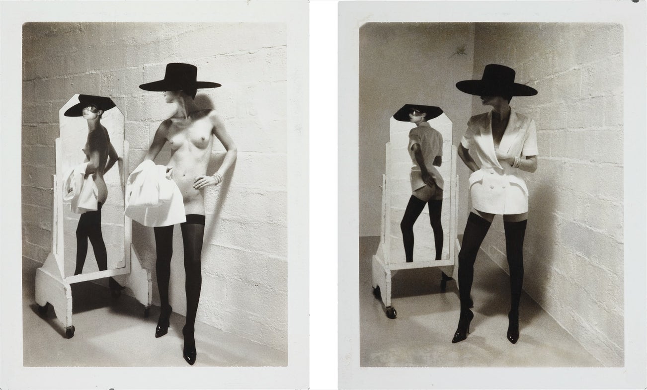 Many of the Newton Polaroids found in the Piero Bisazza Collection are the actual prints reproduced in Pola Woman. Such examples in the sale include the cover of Pola Woman, Arielle for Amica, Milan (lot 8), Prunella and Sylvie on the Quai d'Orsay for Playboy (lot 152) and the first Polaroid in Pola Woman, Modelling Fashion for Vogue Hommes (lot 160). Polaroids of such quintessential Newton images as Bergström over Paris (lot 11) and Sylvia in My Studio (lot 159) are also featured. Together, these works offer a captivating insight into how ideas were formed in Newton’s restless imagination and reveal the eye of a master photographer.