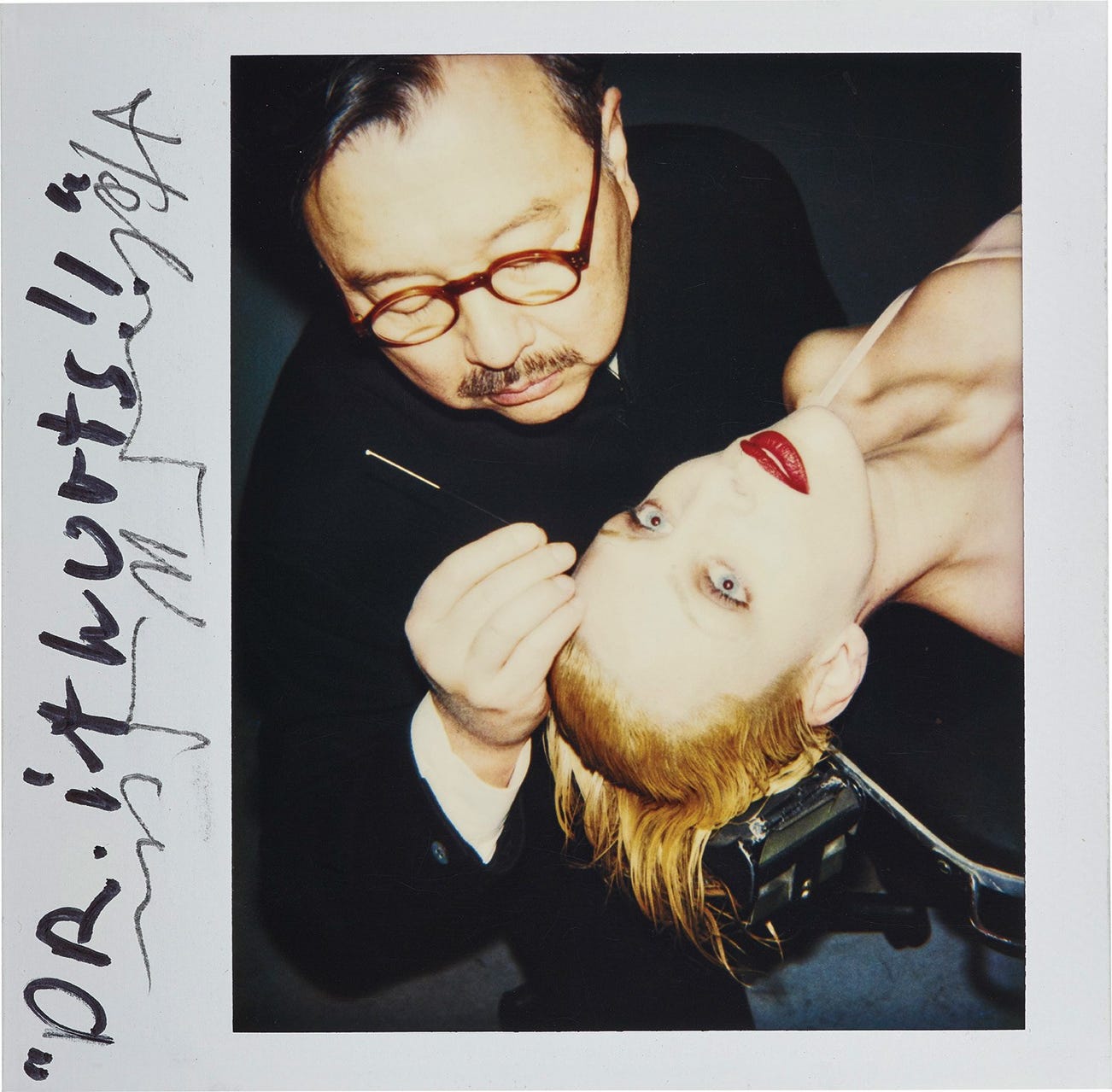 Mr Chow and model on surgical bed