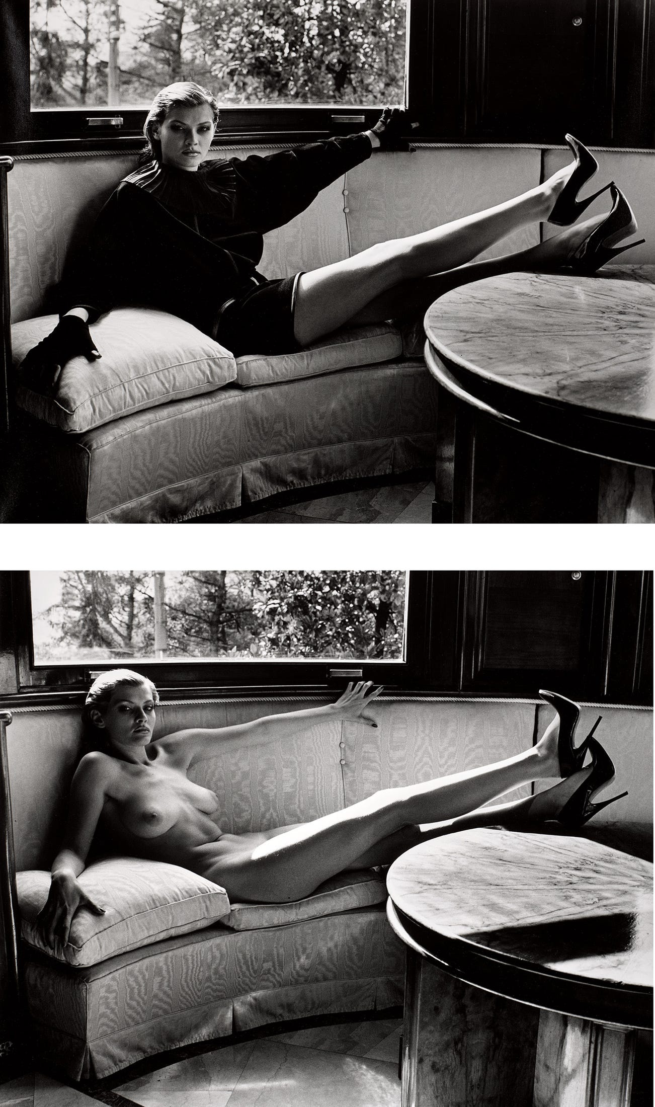 Newton created a working space for his models that was part decadent and part unorthodox — a safe microcosm in which fantasies became reality. And perhaps most famously of all, Newton engendered an environment in which his female models claimed the space around them with unapologetic poise and commanding sensuality. His almost cinematic compositions provided a hyper-real backdrop for the provocative images of sculptural, larger-than-life women, and enhanced the themes of voyeurism and fetishism that run throughout his work.