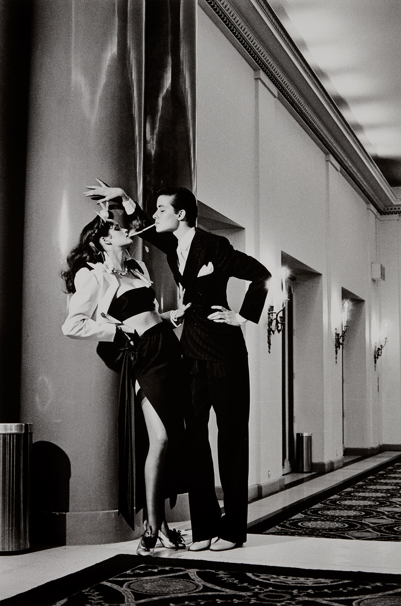 Newton created a working space for his models that was part decadent and part unorthodox — a safe microcosm in which fantasies became reality. And perhaps most famously of all, Newton engendered an environment in which his female models claimed the space around them with unapologetic poise and commanding sensuality. His almost cinematic compositions provided a hyper-real backdrop for the provocative images of sculptural, larger-than-life women, and enhanced the themes of voyeurism and fetishism that run throughout his work.
