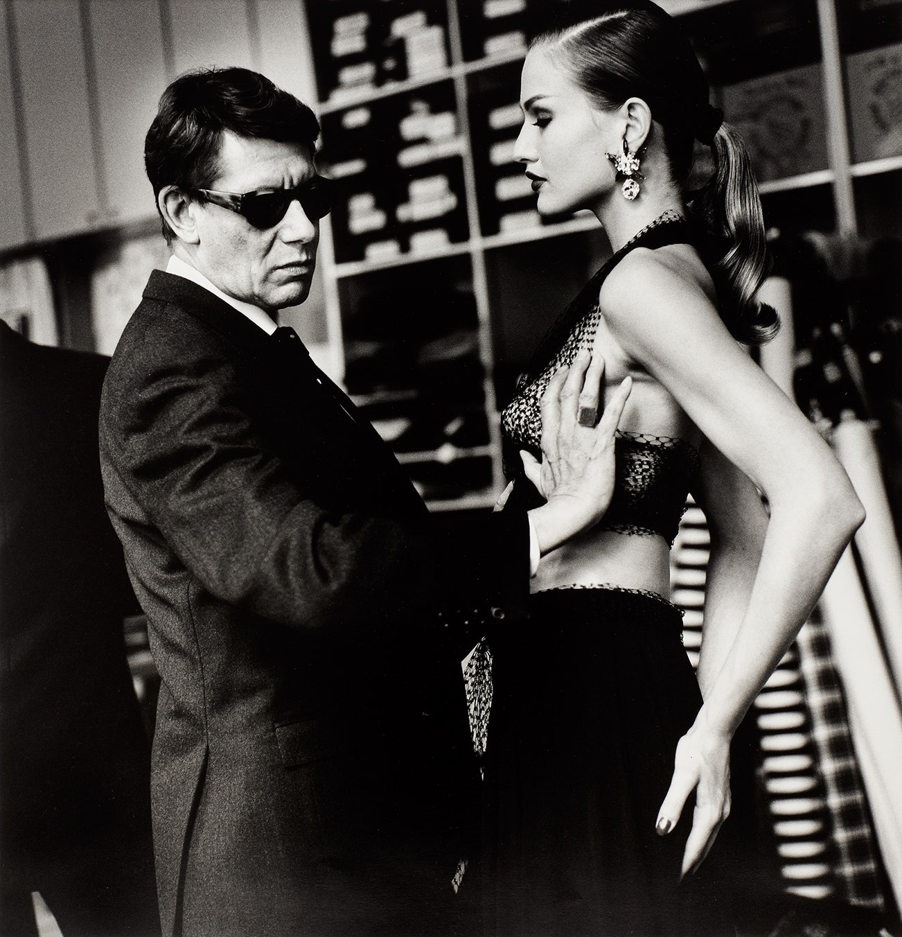 Newton created a working space for his models that was part decadent and part unorthodox — a safe microcosm in which fantasies became reality. And perhaps most famously of all, Newton engendered an environment in which his female models claimed the space around them with unapologetic poise and commanding sensuality. His almost cinematic compositions provided a hyper-real backdrop for the provocative images of sculptural, larger-than-life women, and enhanced the themes of voyeurism and fetishism that run throughout his work.