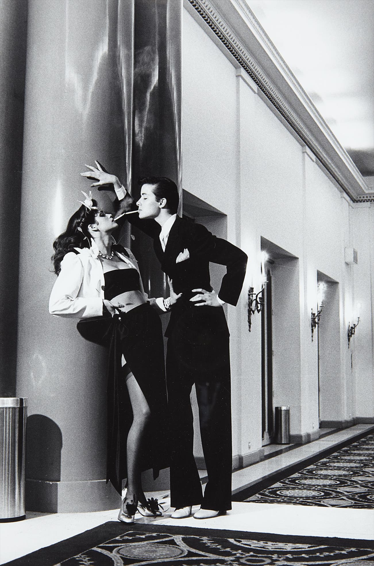 Newton created a working space for his models that was part decadent and part unorthodox — a safe microcosm in which fantasies became reality. And perhaps most famously of all, Newton engendered an environment in which his female models claimed the space around them with unapologetic poise and commanding sensuality. His almost cinematic compositions provided a hyper-real backdrop for the provocative images of sculptural, larger-than-life women, and enhanced the themes of voyeurism and fetishism that run throughout his work.