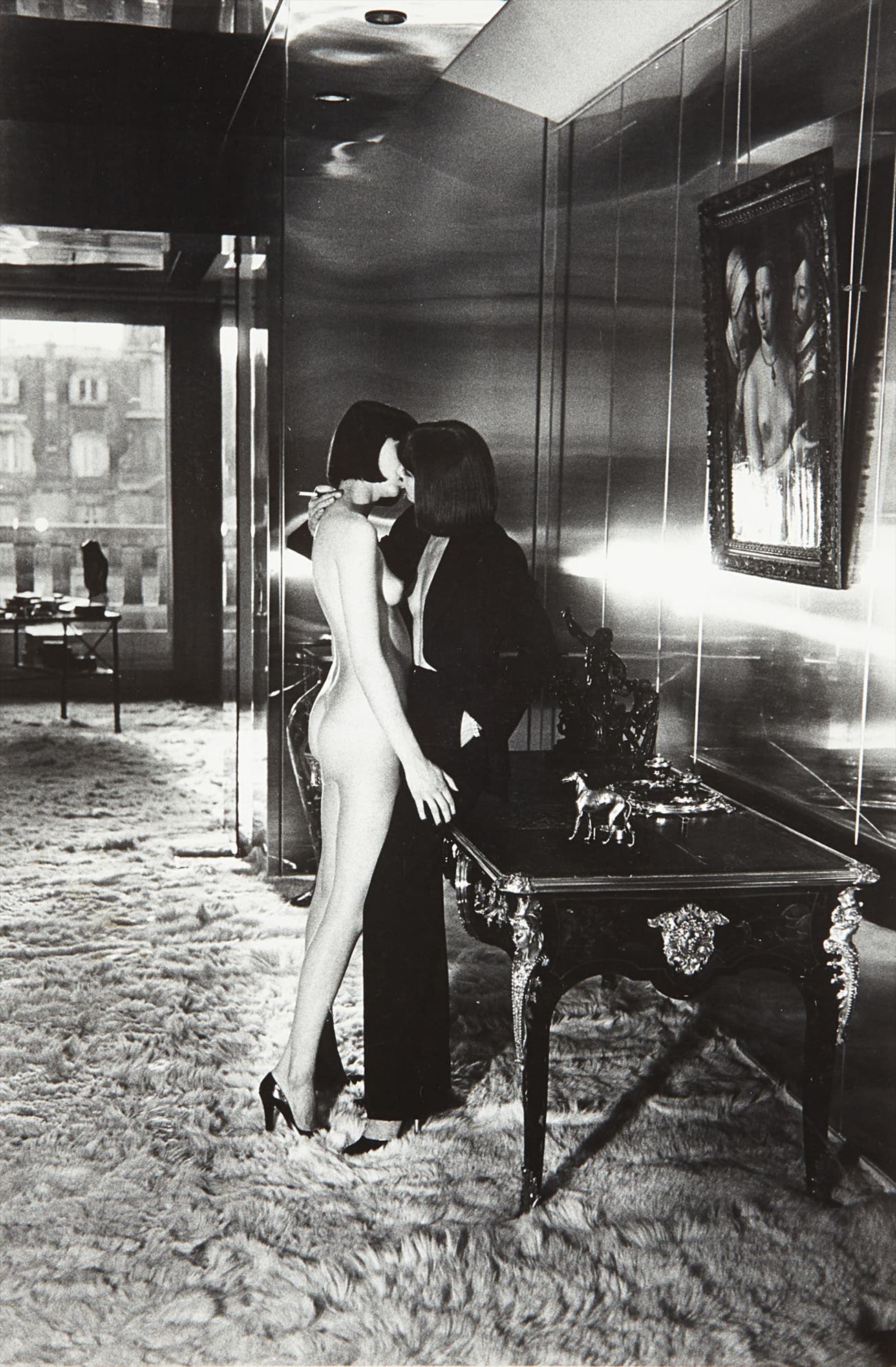 Newton created a working space for his models that was part decadent and part unorthodox — a safe microcosm in which fantasies became reality. And perhaps most famously of all, Newton engendered an environment in which his female models claimed the space around them with unapologetic poise and commanding sensuality. His almost cinematic compositions provided a hyper-real backdrop for the provocative images of sculptural, larger-than-life women, and enhanced the themes of voyeurism and fetishism that run throughout his work.