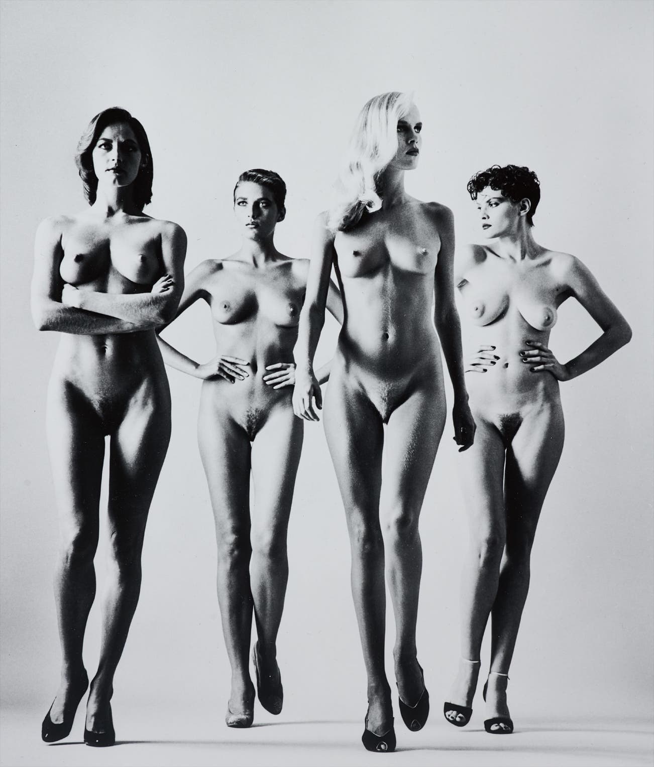 Newton created a working space for his models that was part decadent and part unorthodox — a safe microcosm in which fantasies became reality. And perhaps most famously of all, Newton engendered an environment in which his female models claimed the space around them with unapologetic poise and commanding sensuality. His almost cinematic compositions provided a hyper-real backdrop for the provocative images of sculptural, larger-than-life women, and enhanced the themes of voyeurism and fetishism that run throughout his work.
