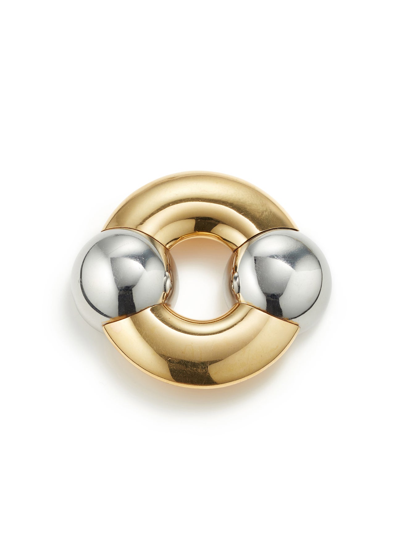 Platinum and 18 karat yellow gold, measuring approximately 1.80 x 2.25 inches