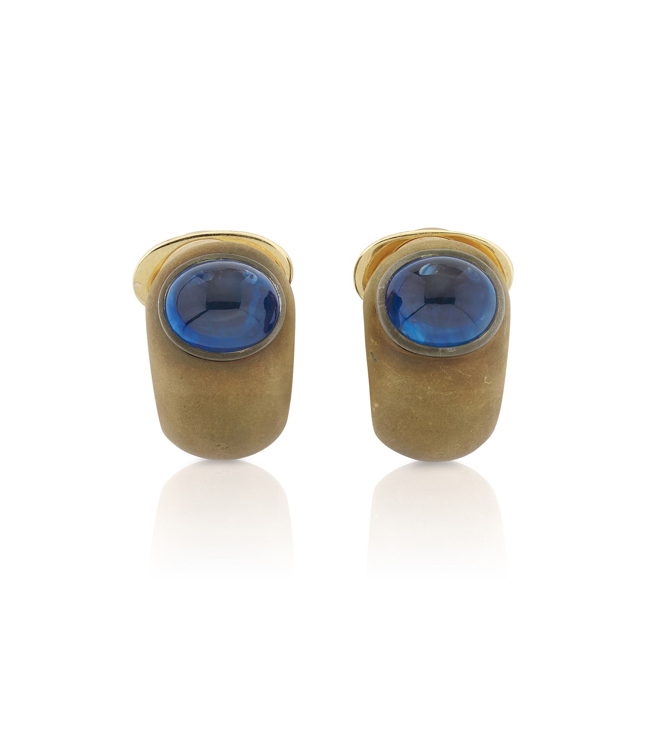 Each cabochon sapphire set within a brushed gold mount, one stamped GH for Hemmerle, case stamped Hemmerle.