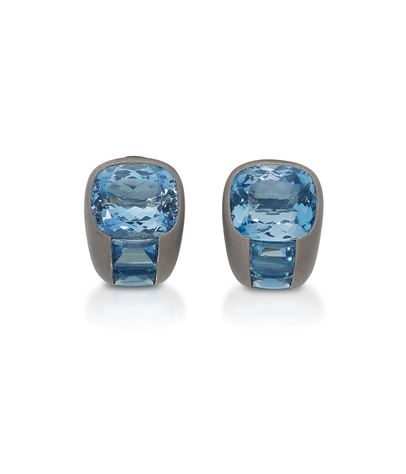 Each set with a cushion-shaped aquamarine, accented with buff-topped calibré-cut aquamarines, maker's mark for Hemmerle, pouch stamped Hemmerle.