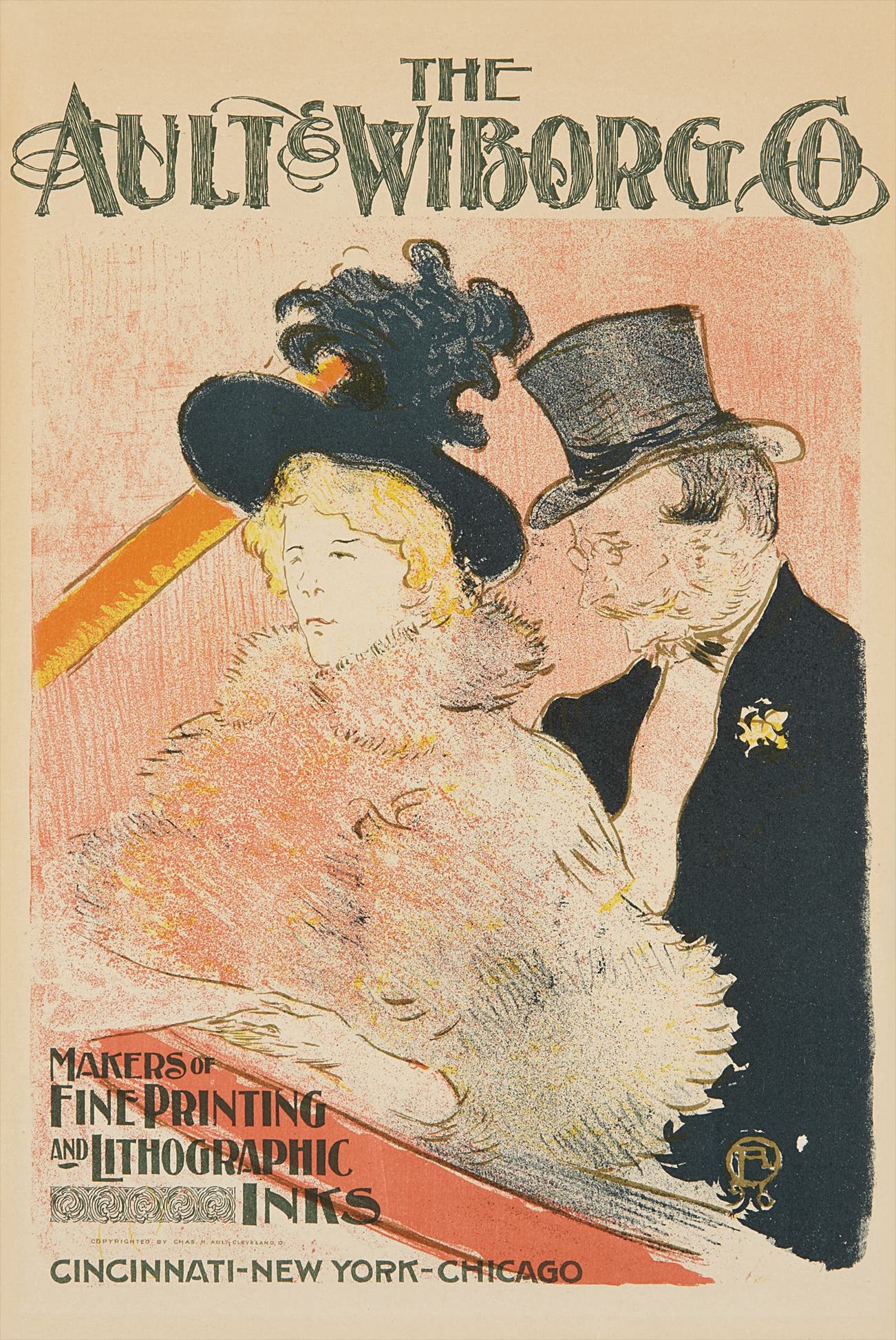 Lautrec’s only American commission came from the lithographic ink manufacturers Ault & Wiborg in Cincinnati. The poster is his only work printed on zinc rather than stone, and its medium and small scale were dictated by the necessity of sending the plates across the Atlantic for printing.