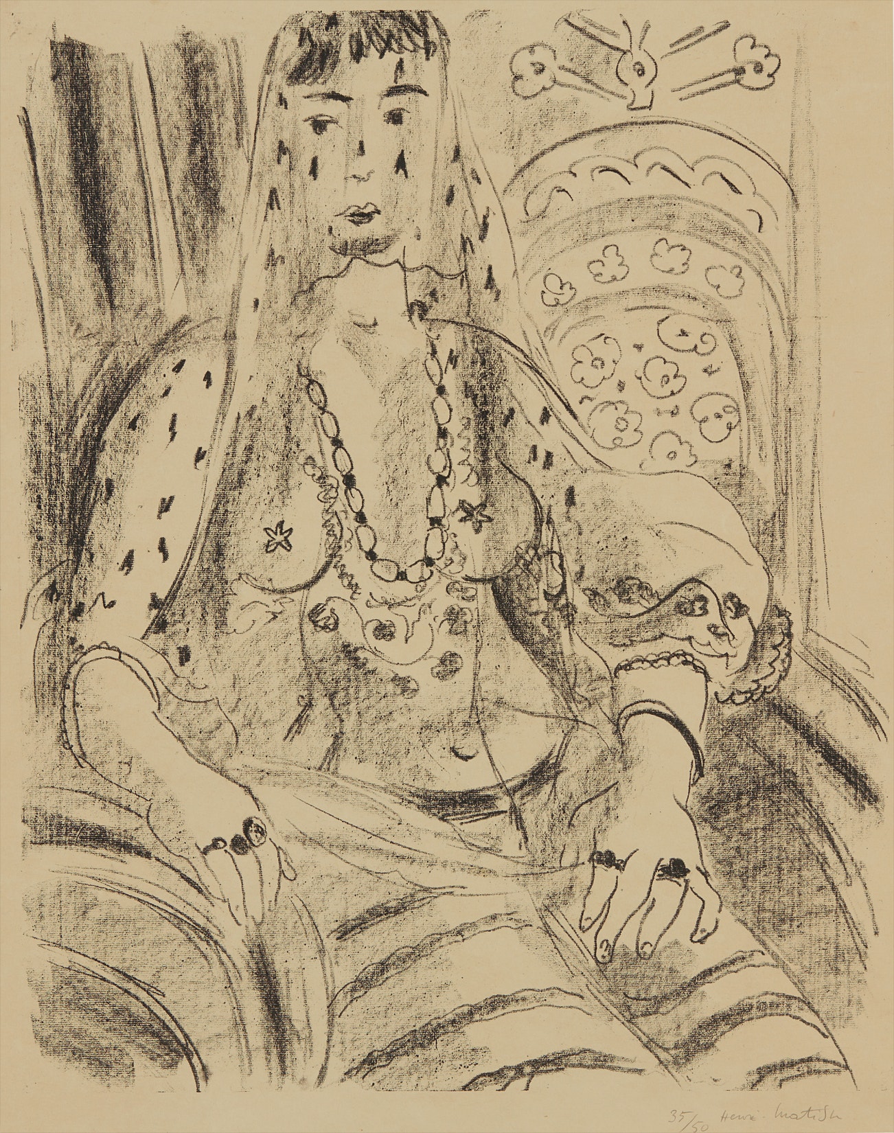 French | B. 1869 D. 1954The leading figure of the Fauvist movement at the turn of the 20th century, Henri Matisse is widely regarded as the giant of modern art alongside friend and rival Pablo Picasso. Working as a painter, draughtsman, printmaker and sculptor for over five decades, he radically challenged traditional conventions in art by experimenting with vivid colors, flat shapes and distilled line. Rather than modeling or shading to lend volume to his pictures, the French artist employed contrasting areas of unmodulated color. Heavily influenced by the art and visual culture of non-Western cultures, his subjects ranged from nudes, dancers, odalisques, still lifes and interior scenes and later evolved into the graphic semi-abstractions of his cut-outs of his late career.