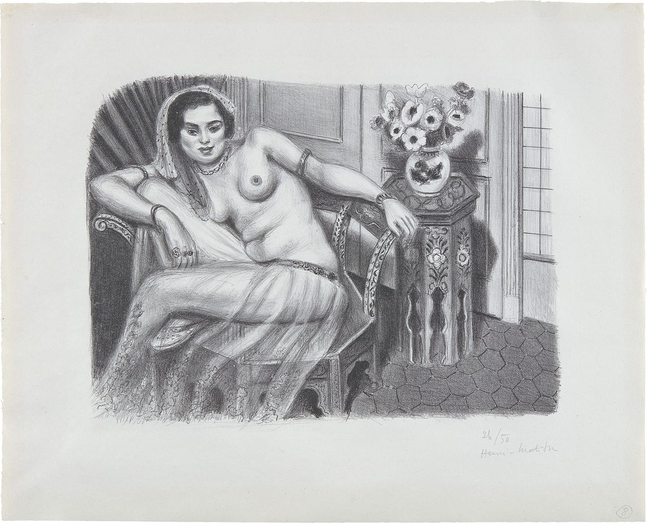French | B. 1869 D. 1954The leading figure of the Fauvist movement at the turn of the 20th century, Henri Matisse is widely regarded as the giant of modern art alongside friend and rival Pablo Picasso. Working as a painter, draughtsman, printmaker and sculptor for over five decades, he radically challenged traditional conventions in art by experimenting with vivid colors, flat shapes and distilled line. Rather than modeling or shading to lend volume to his pictures, the French artist employed contrasting areas of unmodulated color. Heavily influenced by the art and visual culture of non-Western cultures, his subjects ranged from nudes, dancers, odalisques, still lifes and interior scenes and later evolved into the graphic semi-abstractions of his cut-outs of his late career.