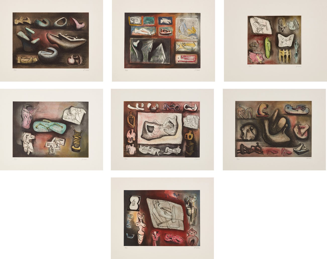 All signed and numbered 18/50 in pencil (there were also 12 in Roman numerals and 10 hors commerce), published by Raymond Spencer Company Ltd. for the Henry Moore Foundation, Much Hadham, in association with 2RC Editions, Rome, all unframed.