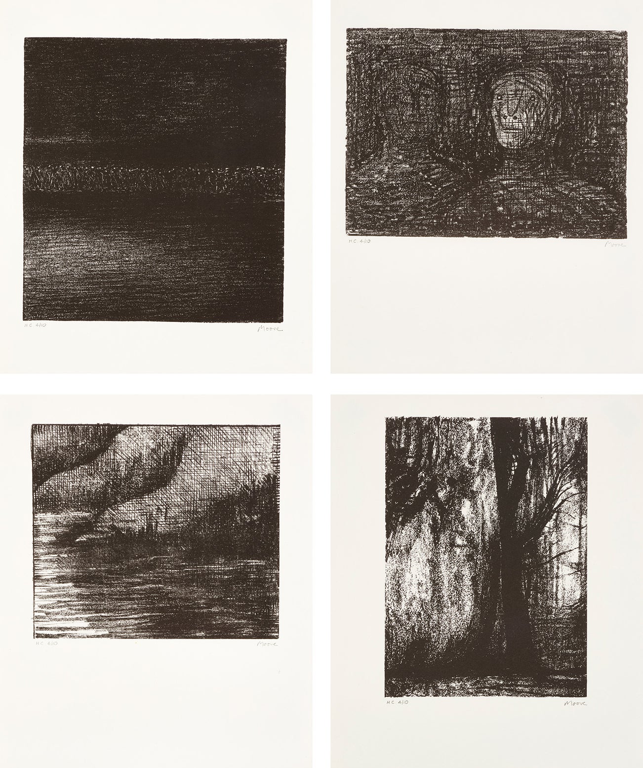 The four loose prints signed and numbered 'H.C. 4/10' in pencil, the book signed, numbered and dedicated 'for/Eric Ayers.' in pencil on the justification (there was also an edition of 150 in Roman numerals bound in green linen and one in crimson linen, there were also 10 artist's proofs), published by Petersburg Press, London.