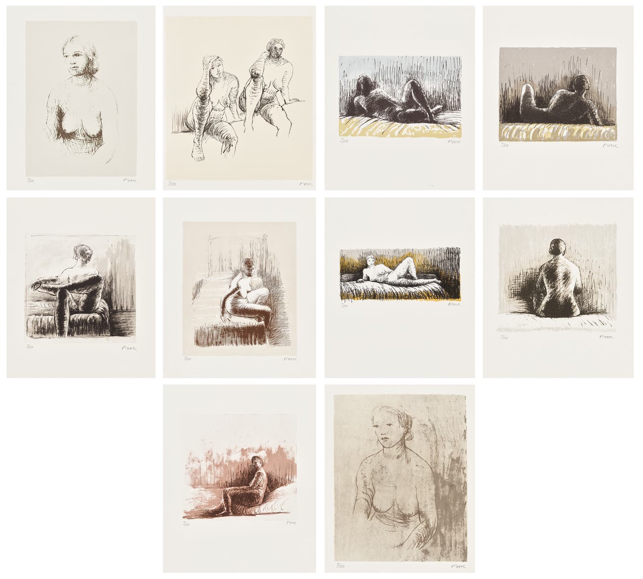 The complete set of 10 lithographs in colors, on J. Green waterleaf paper, with full margins, with title page and colophon, all loose (as issued), all contained in the original cloth-covered portfolio with a lithograph on the cover.