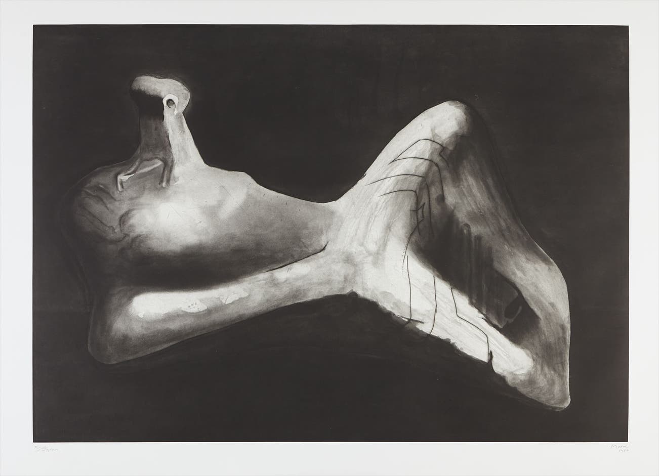 The making of this monumental intaglio print was facilitated by Valter Rossi from 2RC Editions, Rome, who enabled Moore to use a special press near his summer home. The scale and complexity of the printing techniques draws many parallels to his sculptural works - in forms and fabrication.