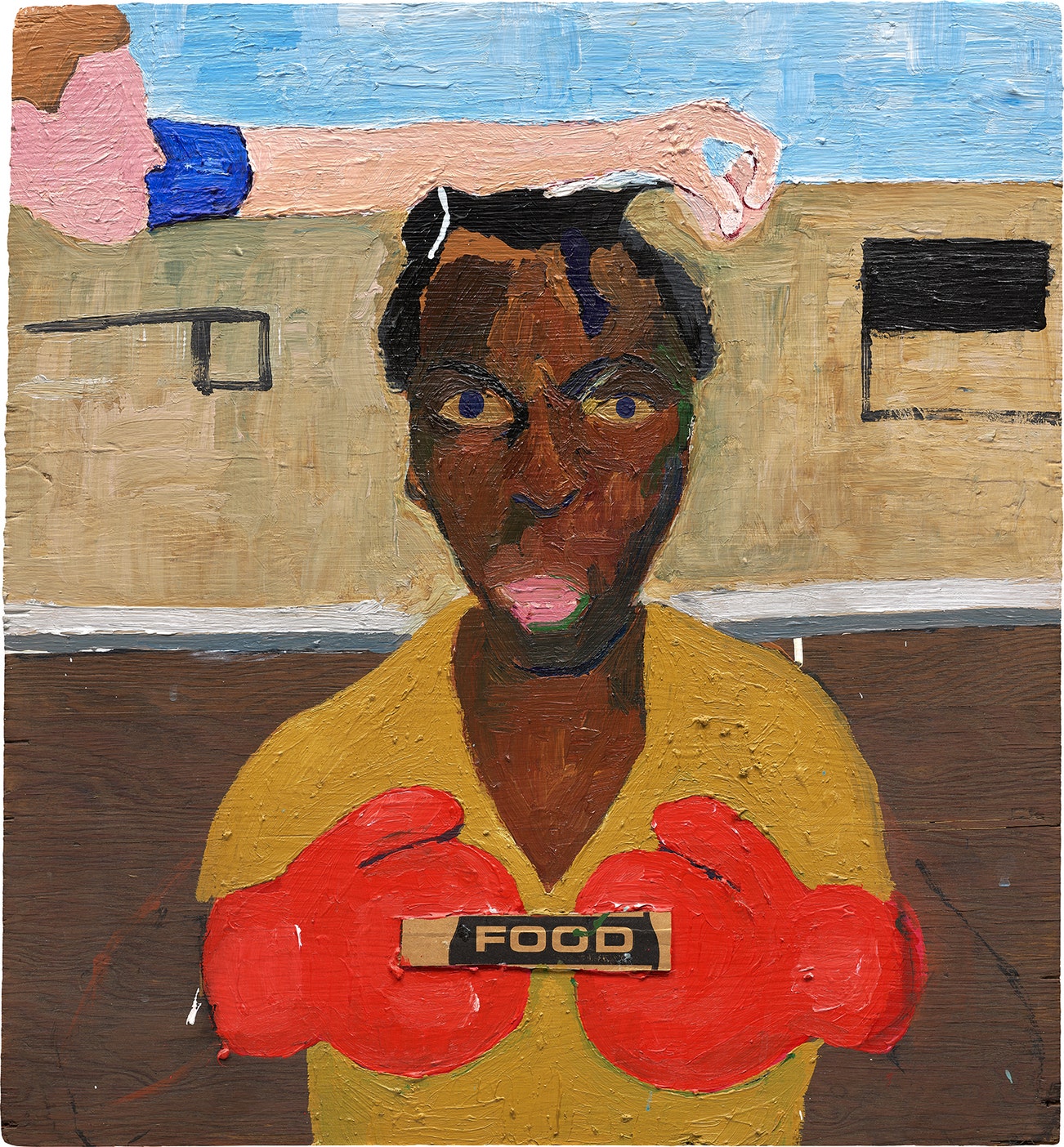 acrylic and cardboard collage on panel