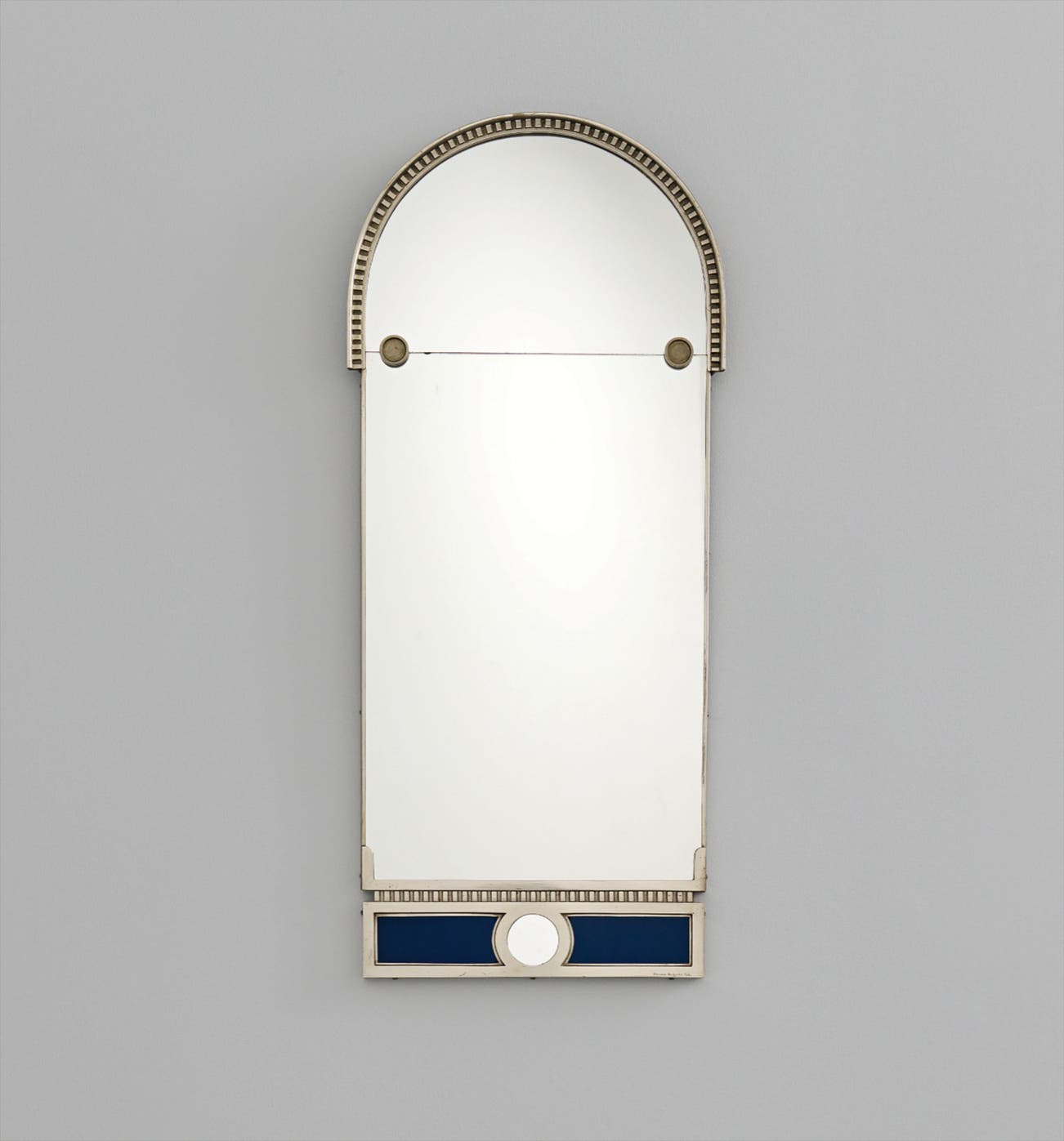 Pewter, mirrored glass, coloured glass.