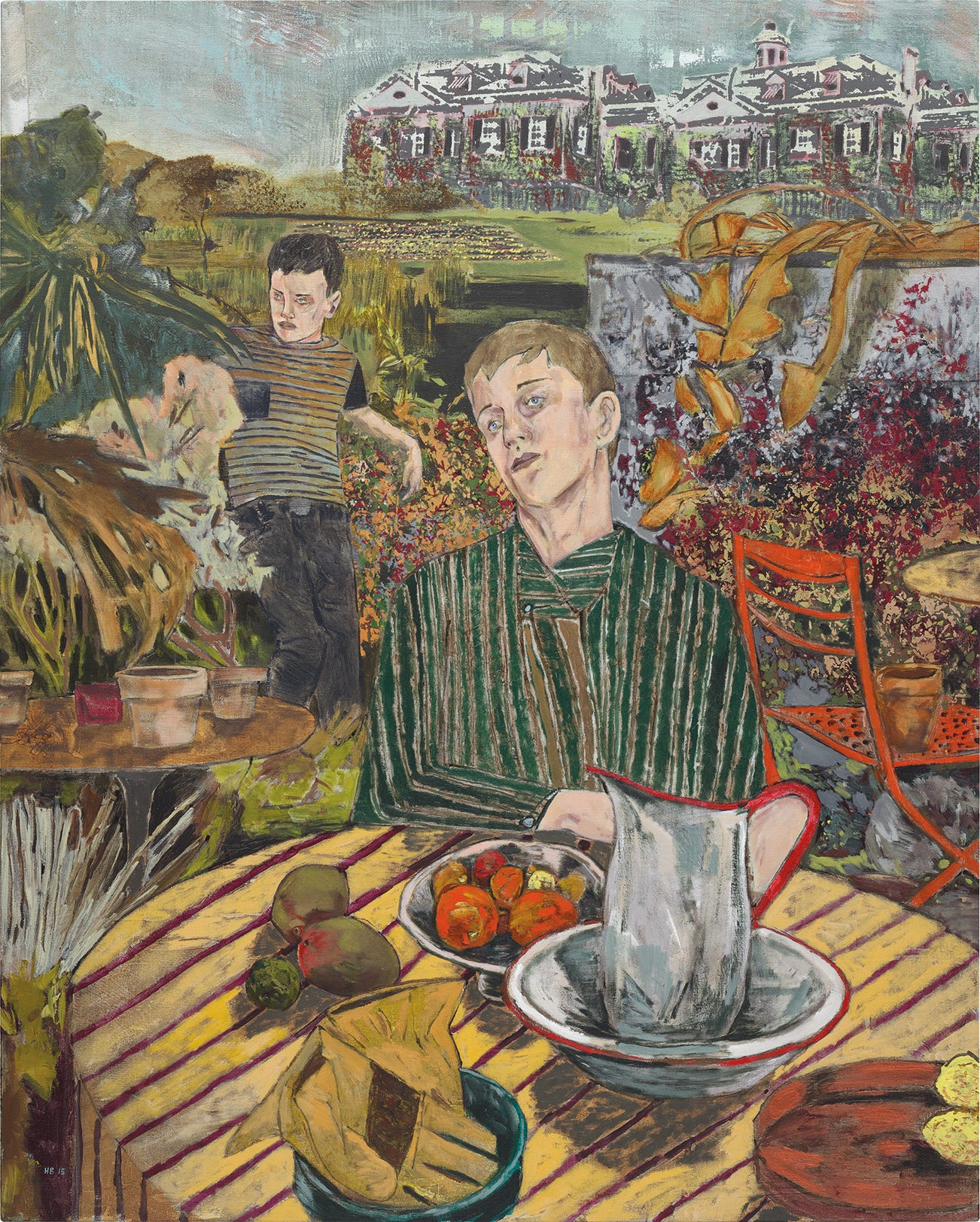 Hernan Bas (b.1978) is a contemporary American painter who lives and works in Miami. His paintings are influenced by the romantic and decadent legacies of 18th and 19th century art, literature, poetry, and religion. These influences result in canvases that are complex and highly detailed and often portray characters, typically young male figures, nestled among flora and fauna.