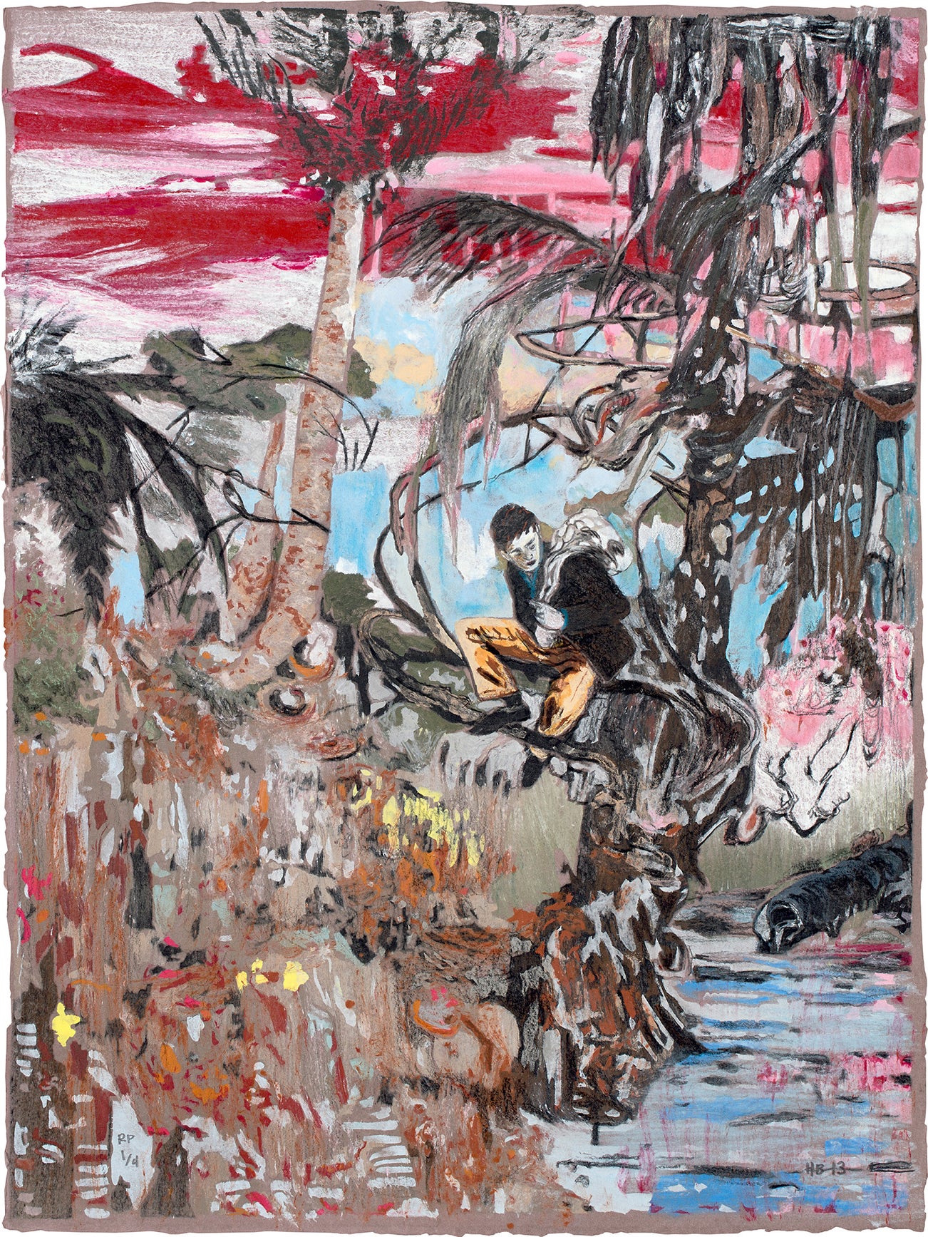 Hernan Bas (b.1978) is a contemporary American painter who lives and works in Miami. His paintings are influenced by the romantic and decadent legacies of 18th and 19th century art, literature, poetry, and religion. These influences result in canvases that are complex and highly detailed and often portray characters, typically young male figures, nestled among flora and fauna.