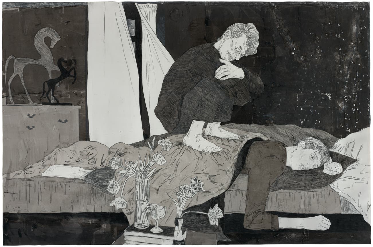 Hernan Bas (b.1978) is a contemporary American painter who lives and works in Miami. His paintings are influenced by the romantic and decadent legacies of 18th and 19th century art, literature, poetry, and religion. These influences result in canvases that are complex and highly detailed and often portray characters, typically young male figures, nestled among flora and fauna.