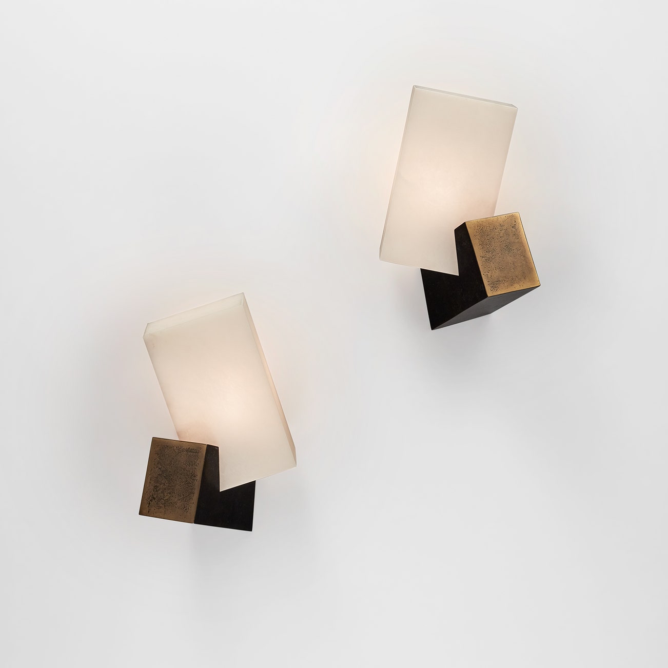 Patinated bronze, alabaster.