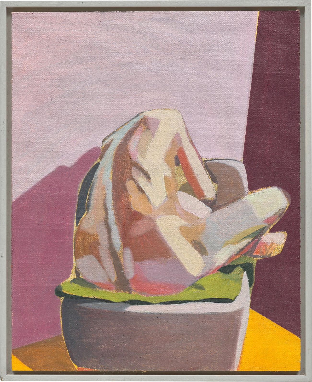 signed, signed with the artist's initials, titled and dated 'HESTER FINCH "HEADLESS NUDE (SEATED, PINK/PURPLE/YELLOW)" 2015 HF' on the reverse