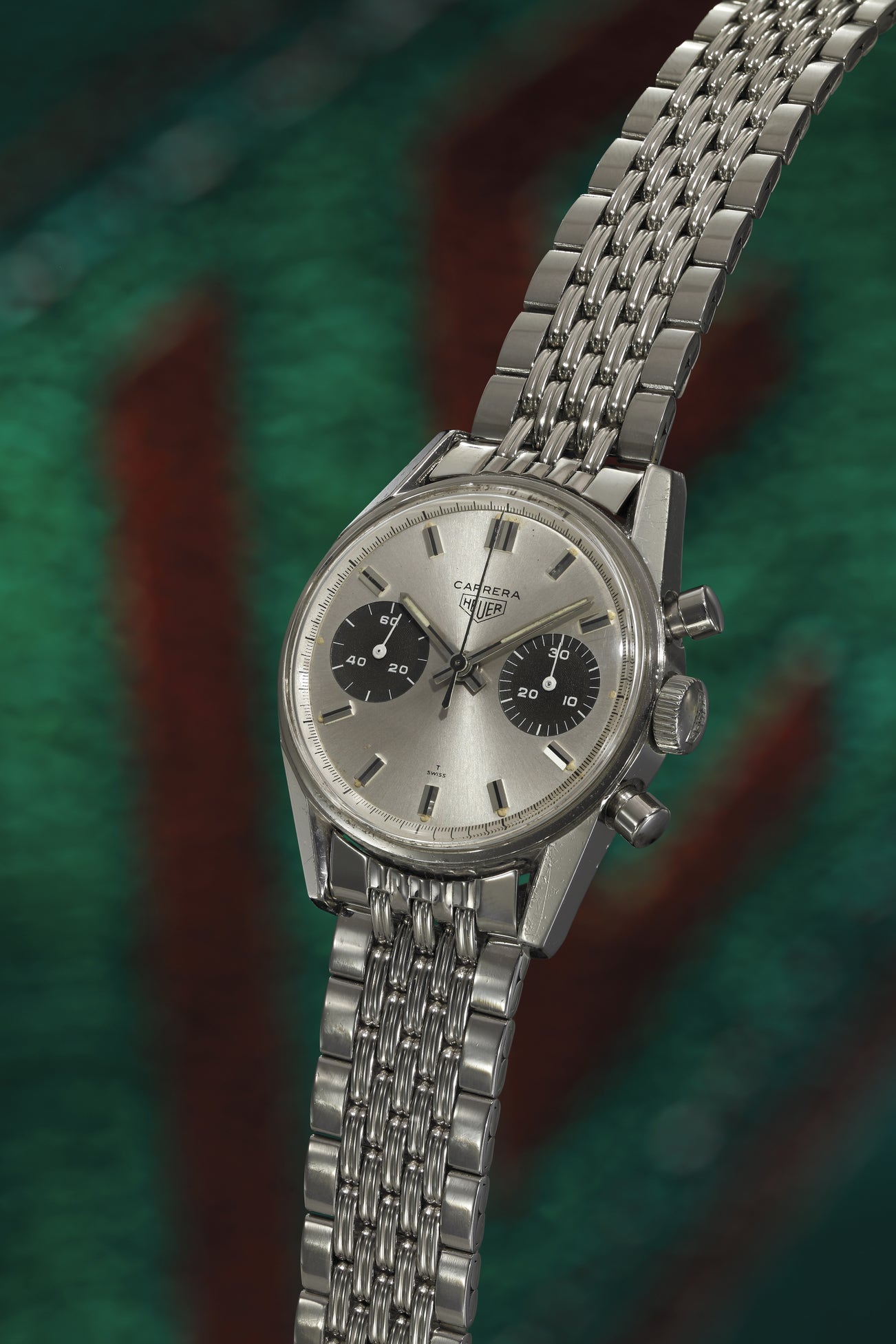 With its no frills dial with almost Bauhaus zen feel, this timepiece, contrary to the majority of Heuers that bring to mind the smell of burnt rubber, gasoline and speed, has a somewhat elegant nonchalance. Fitted with a Gay Frères double grain bracelet stamped 4th quarter of 1971 this watch is in very good condition which, along with its ultimate rarity, will please the discerning collector.