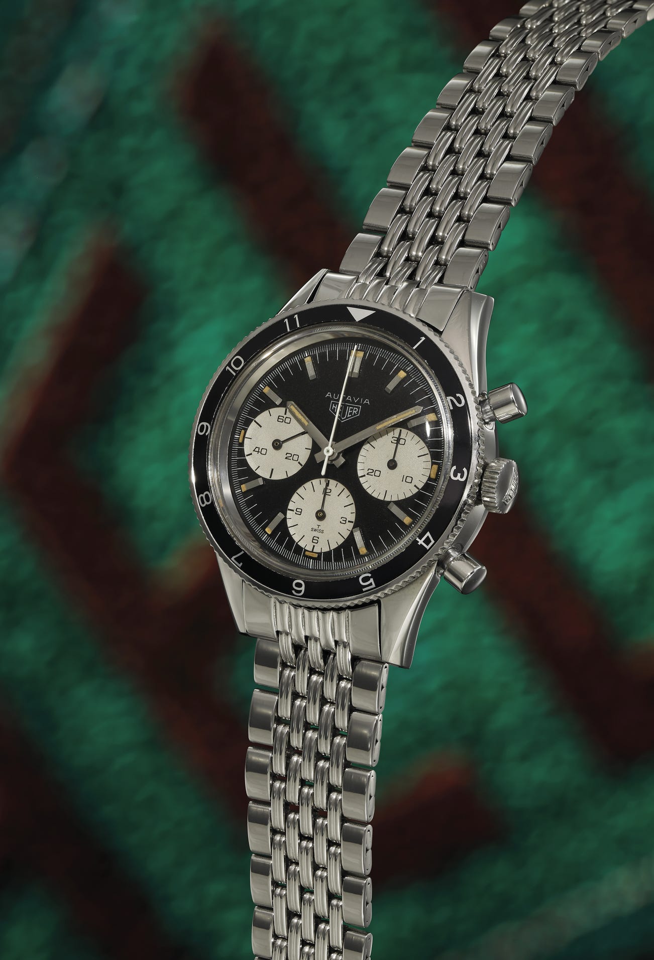 One of the most coveted of the Autavia models, the present reference 2446 from 1966 was especially favored by its namesake, the rakish Formula 1 Champion, Jochen Rindt, who wore the watch as documented in numerous published photographs. He was a prolific racing driver in the 1960s until his untimely death, during the practice session at Monza for the 1970 Italian Grand Prix. Supported by his beautiful wife Nina, who famously sported a Universal Genève Compax, now known to collectors as the "Nina Rindt'; making this glamorous couple the only one where each partner's name was given to a watch by the collectors.