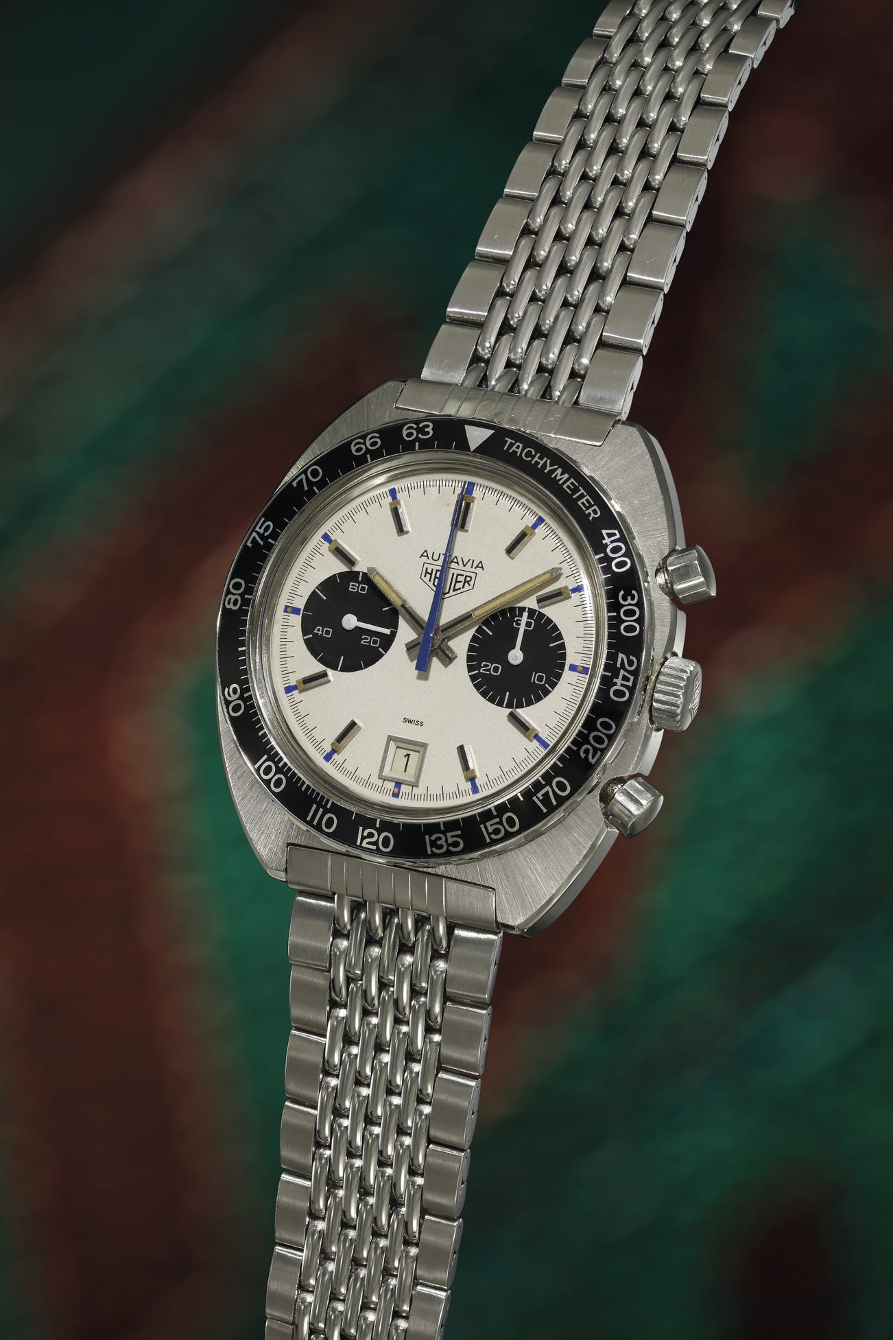 The present chronograph wristwatch shines amongst the lights of the early to mid 1970s Autavias models due to its wonderful unpolished condition, original fitted bracelet and outstanding panda dial making this a worthy addition for the chronograph hunter