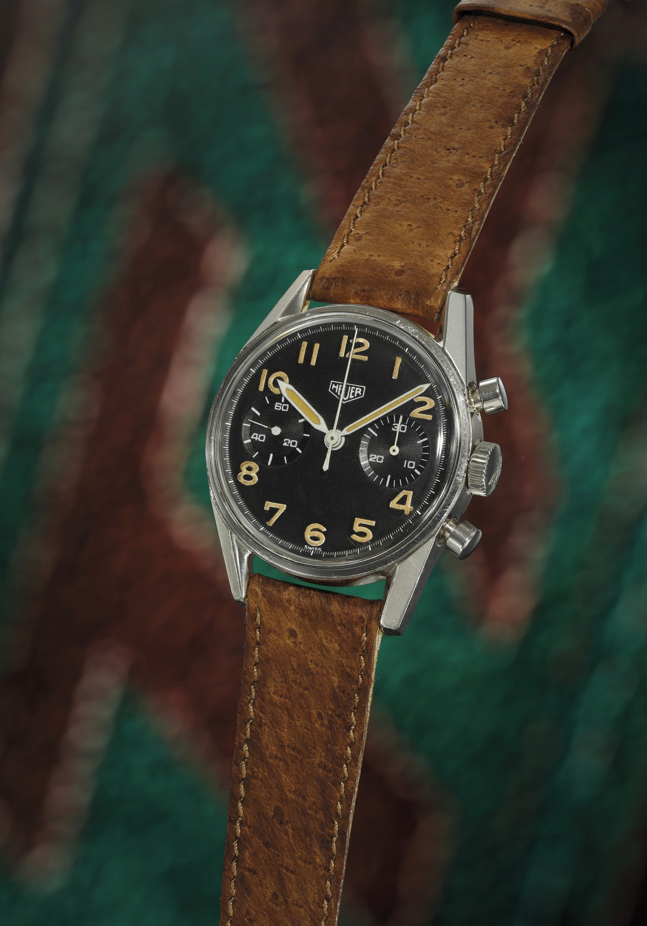 This watch is a deceptively simple connoisseur's piece; as a matter of fact, aside from being a very rare and fascinating watch, it is also a stark reminder that Heuer timepieces were also important tool watches that played a crucial role in military history.