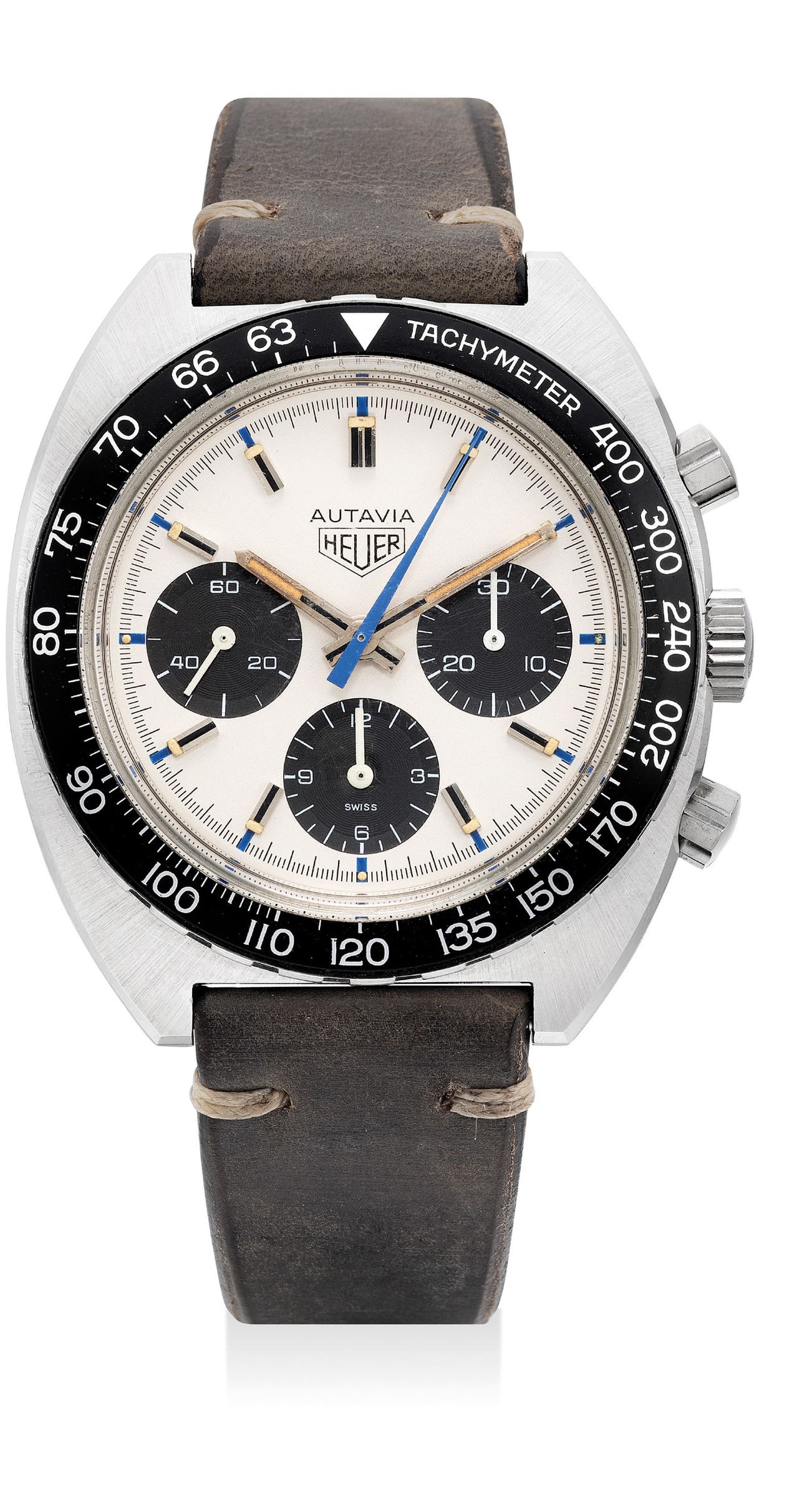 The present example is presented in excellent overall condition and is a great example of a well preserved vintage Heuer Autavia reference 73663 with “Jo Siffert” colors.