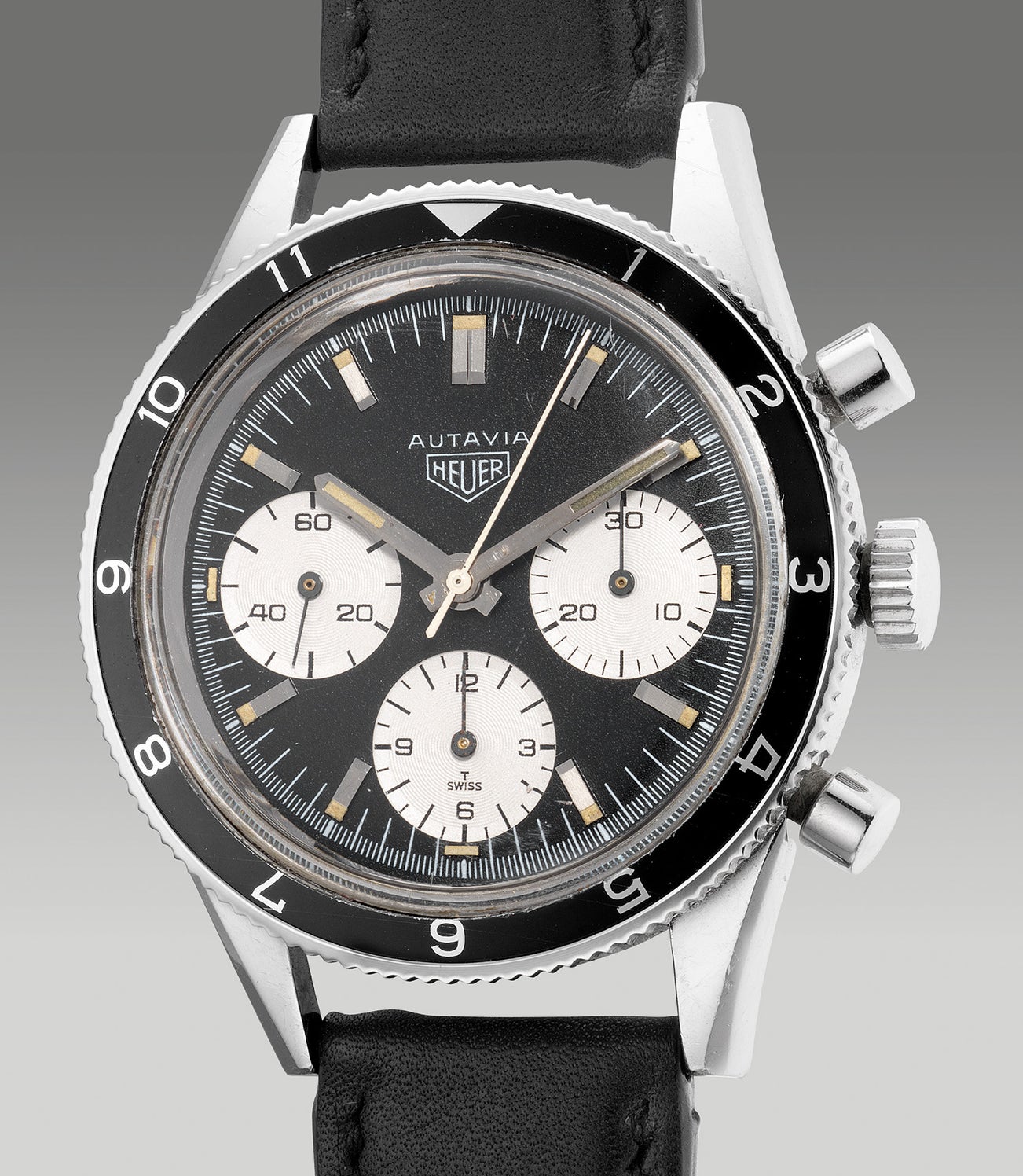 The present ref. 2446 represented the original “Rindt” reference, differed by its third execution dial with applied steel markers and luminous inserts. Earlier first execution features full lume markers and second execution with applied steel markers and lume dots. Preserved in an attractive condition retaining a case with original factory bevels and strong definitions, the lumes are charmed with a delightful patina with incredible vintage appeal. With tremendous looks and robust Valjoux 72 movement, the present timepiece perfectly suited for a vintage motorsports enthusiast is definitely one not to miss.