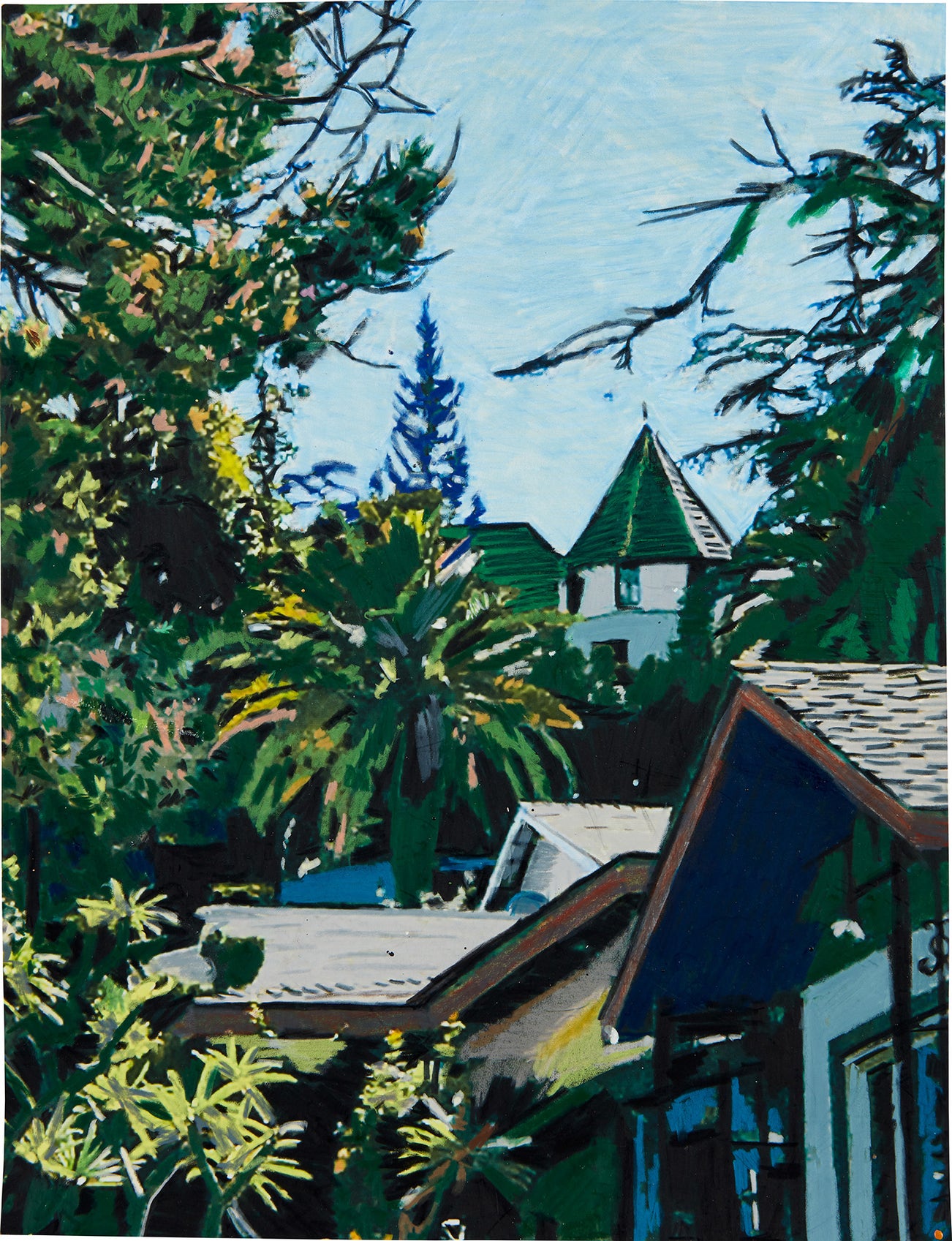 Hilary Pecis (b. 1979) earned a BFA and MFA from the California College of the Arts, San Francisco, CA. She currently lives and works in Los Angeles, California. She is well known for her densely decorated domestic scenes, tablescapes, and Southern California landscapes. Her canvases are saturated with color and a geometric quality defines the recognizable shapes and objects found throughout her compositions.