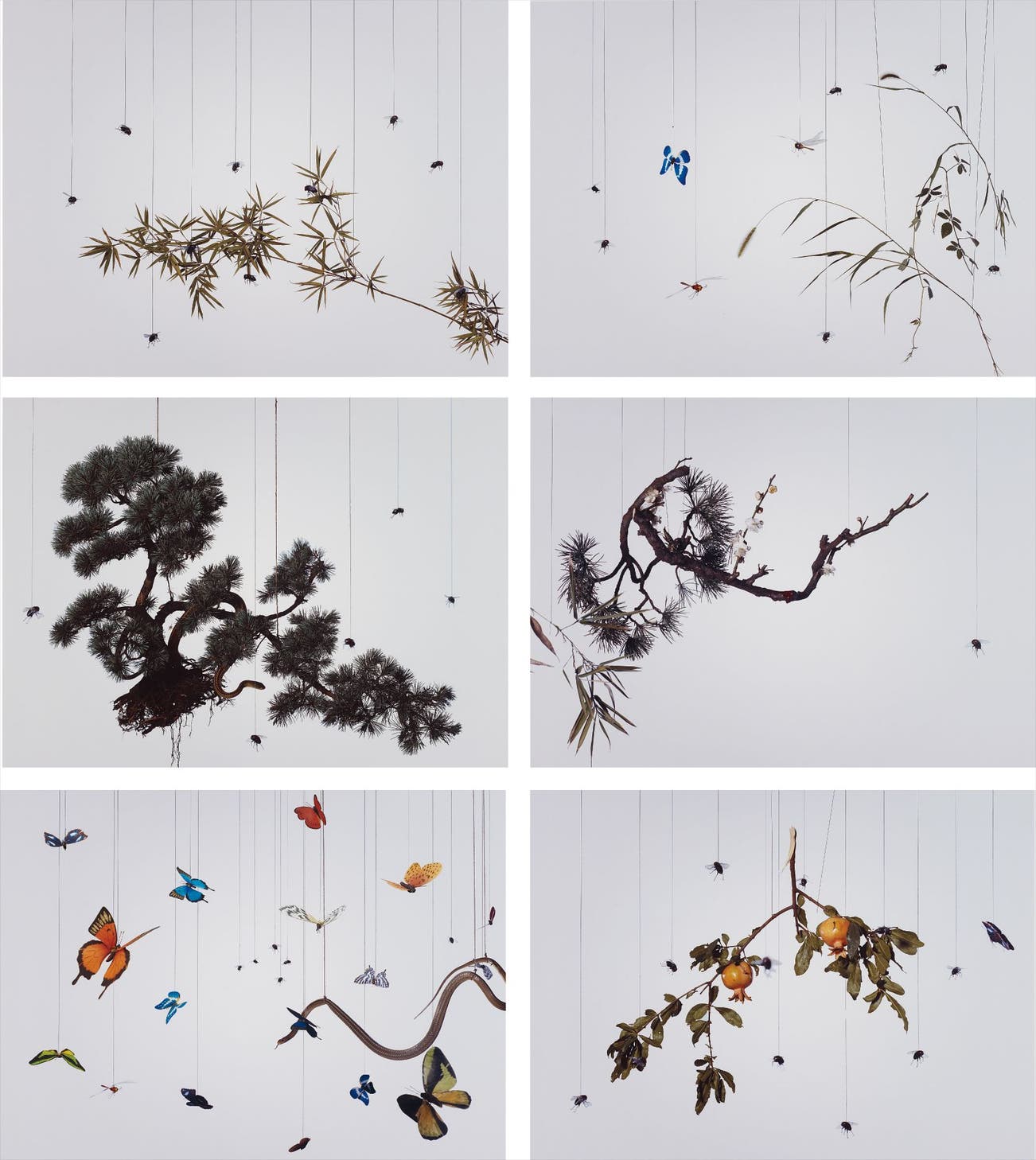 Six dye destruction prints, each flush-mounted.