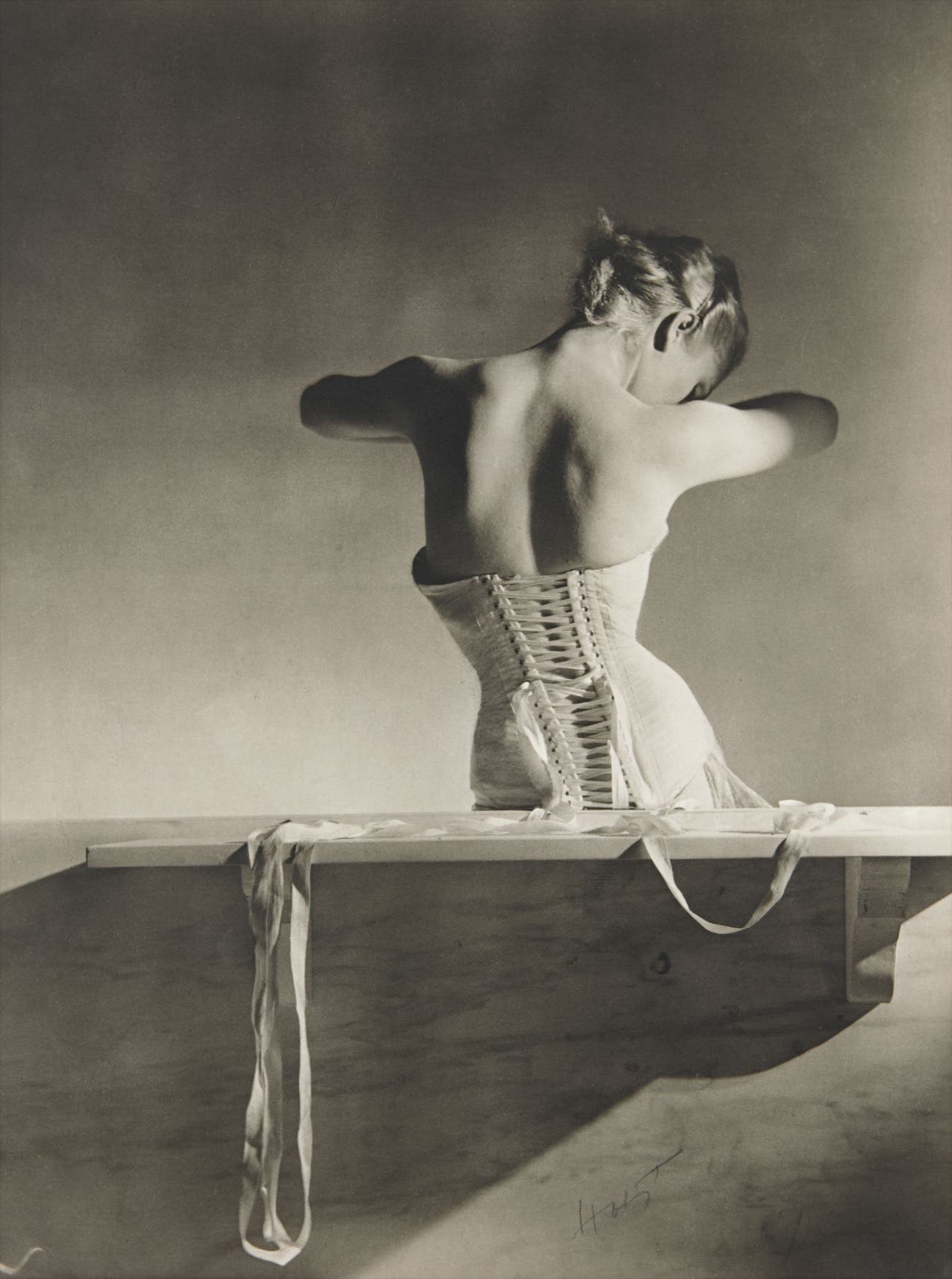 “[Mainbocher Corset] was created by emotion It was the last photo I took in Paris before the war. I left the studio at 4:00 a.m., went back to the house, picked up my bags and caught the 7:00 a.m. train to Le Havre to board the Normandie… The photograph is peculiar— for me. While I was taking it, I was thinking of all that I was leaving behind.”