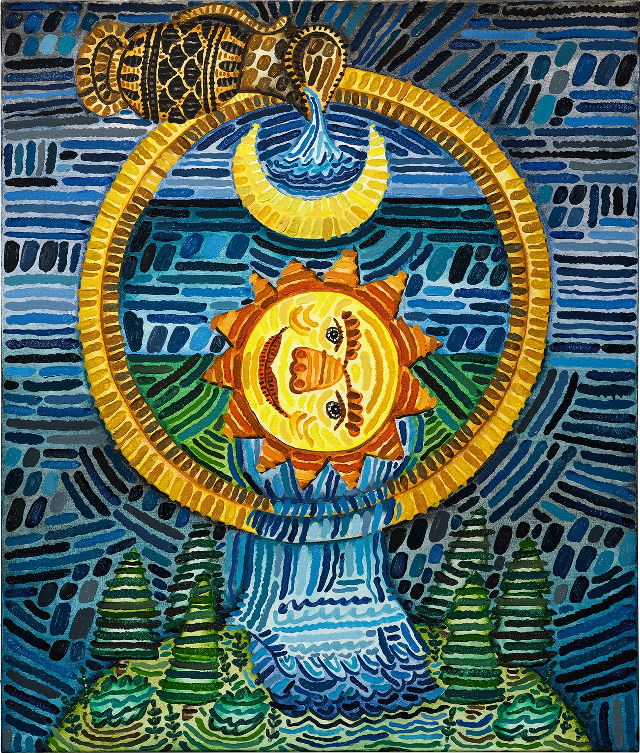 signed with the artist's initials and inscribed 'ME TIME CORINTHIAN SCALE ARYBALLOS DO MORE GENESIS IN THE RETORT HPF' on the reverse