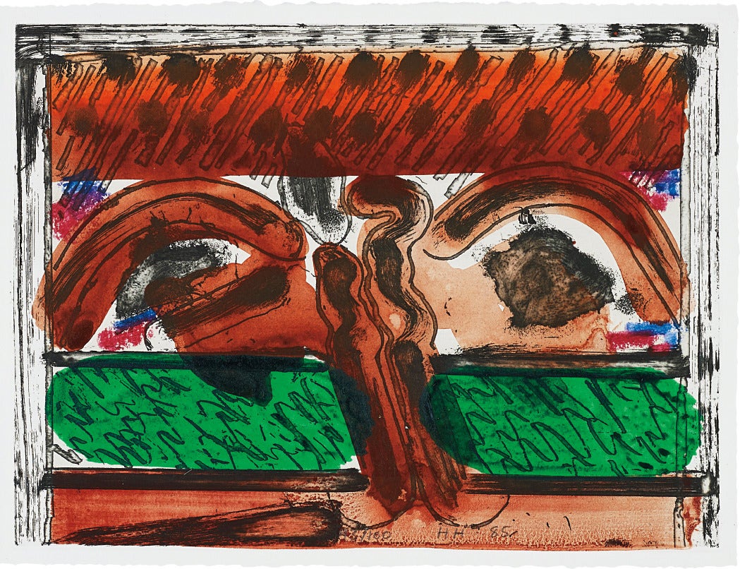 British | B. 1932 D. 2017One of the greatest colorists of his generation, Howard Hodgkin explores the very nature of painting as both cultured language and sheer expression. He disregards the classical polarities of abstraction and representation, past and present, canvas and frame, using gestural brushstrokes and a vivid palette to emphasize the picture plane, while simultaneously seeking to convey memories and emotions.